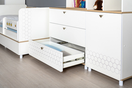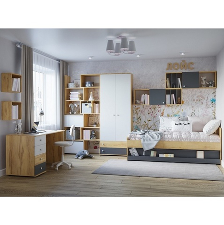 Покупка детской комнаты в формате мебельного комплекта является удобным решением для каждого родителя, которого заботит комфорт собственного ребенка. Все элементы набора выполнены в едином дизайне, поэтому нет потребности тратить время на подбор отдельных предметов мебели так, чтобы они сочетались друг с другом.