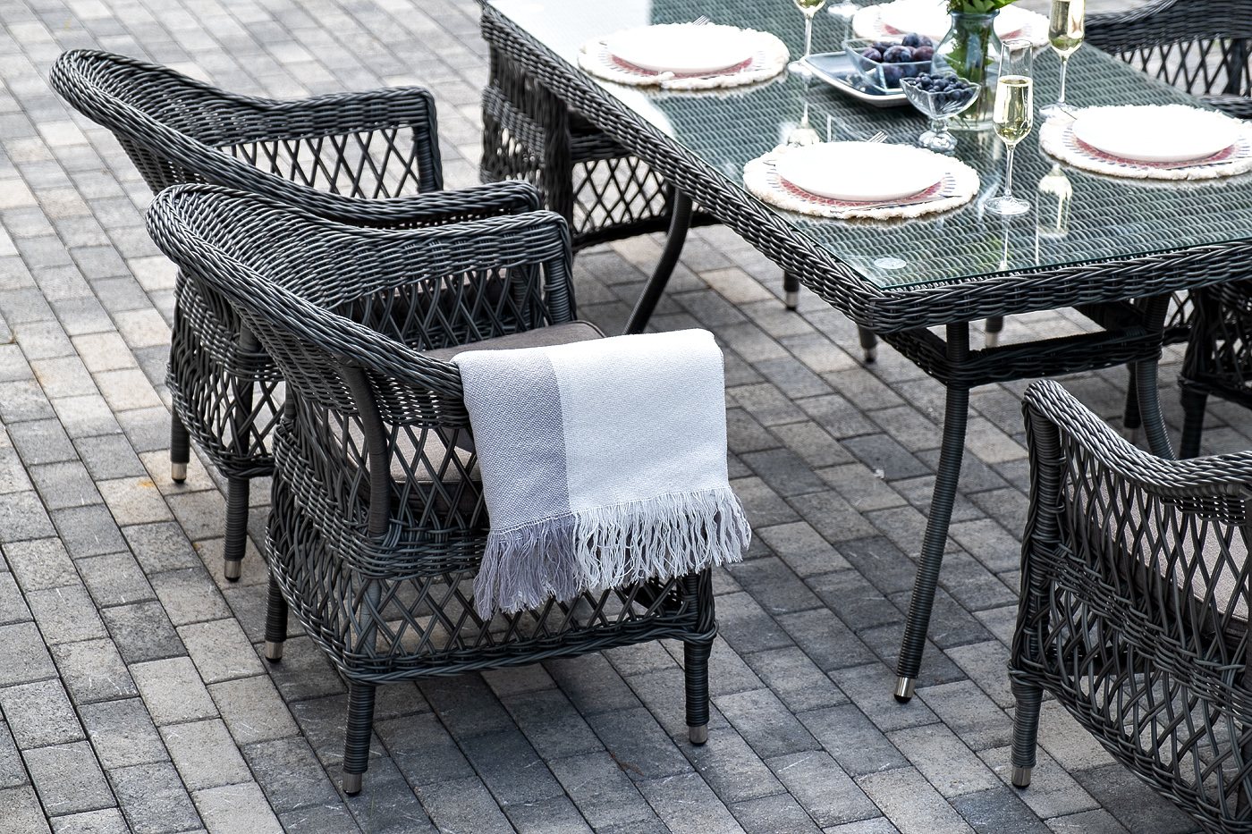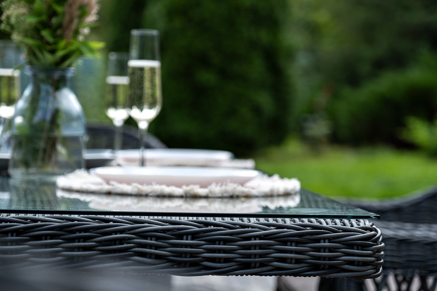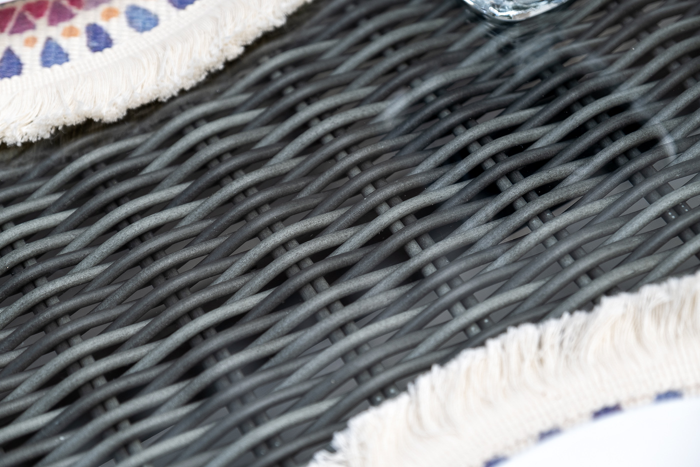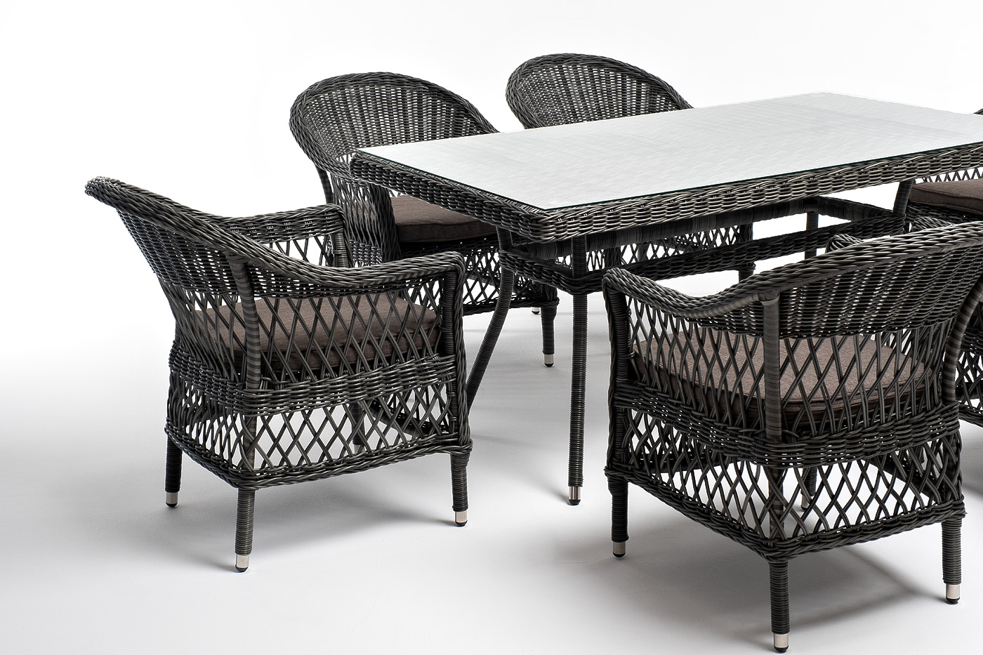 Алюминий используется при создании прочного каркаса мебели. Оформлен ручным плетением из круглого искусственного ротанга графитового цвета.