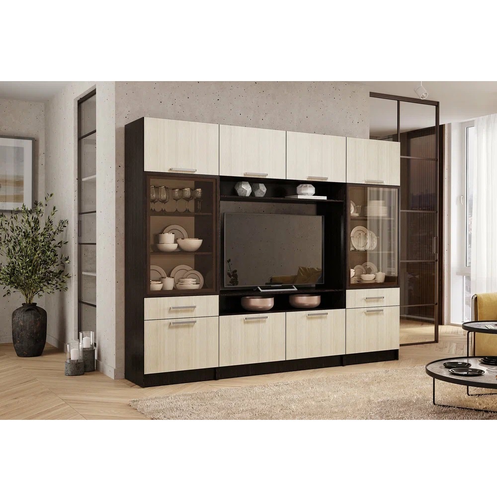 Шкаф для посуды Фиеста в цветах венге и лоредо — это стильное и функциональное решение для вашей кухни. Он оснащён распашной стеклостворкой в центральном фасаде и навесными полками. Удобные антресоль и нижнее отделение закрыты фасадами в цвете «Лоредо». Полновстраиваемый ящик на шариковых направляющих позволяет хранить ваши документы в безопасности.
