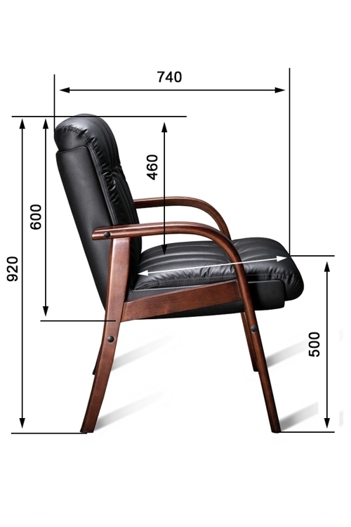 Кресло с низкой спинкой на деревянном каркасе на 4-х ножках, с подлокотниками прямоугольной замкнутой формы с мягкими накладками, обитыми в цвет кресла.