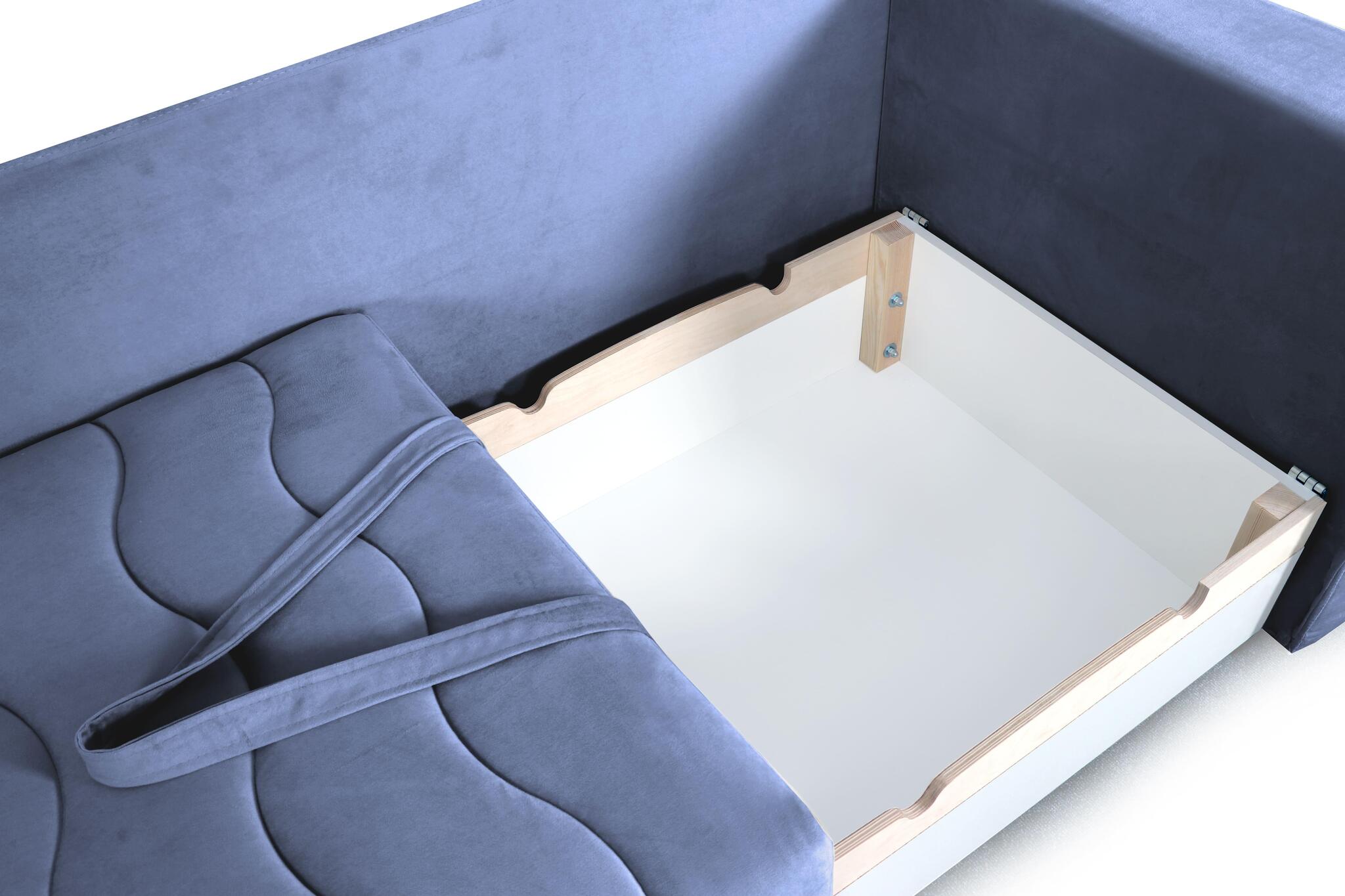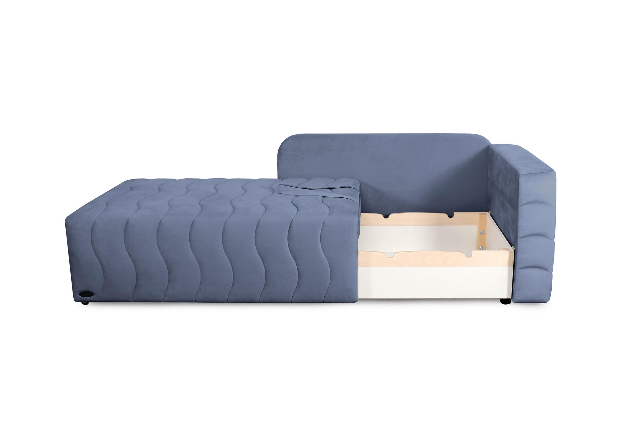 Диван при необходимости превращается в полноценную комфортную кровать, а вместительный бельевой ящик добавляет функциональности.