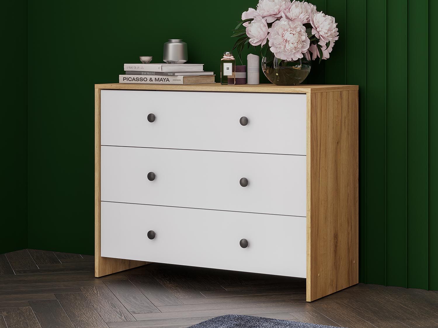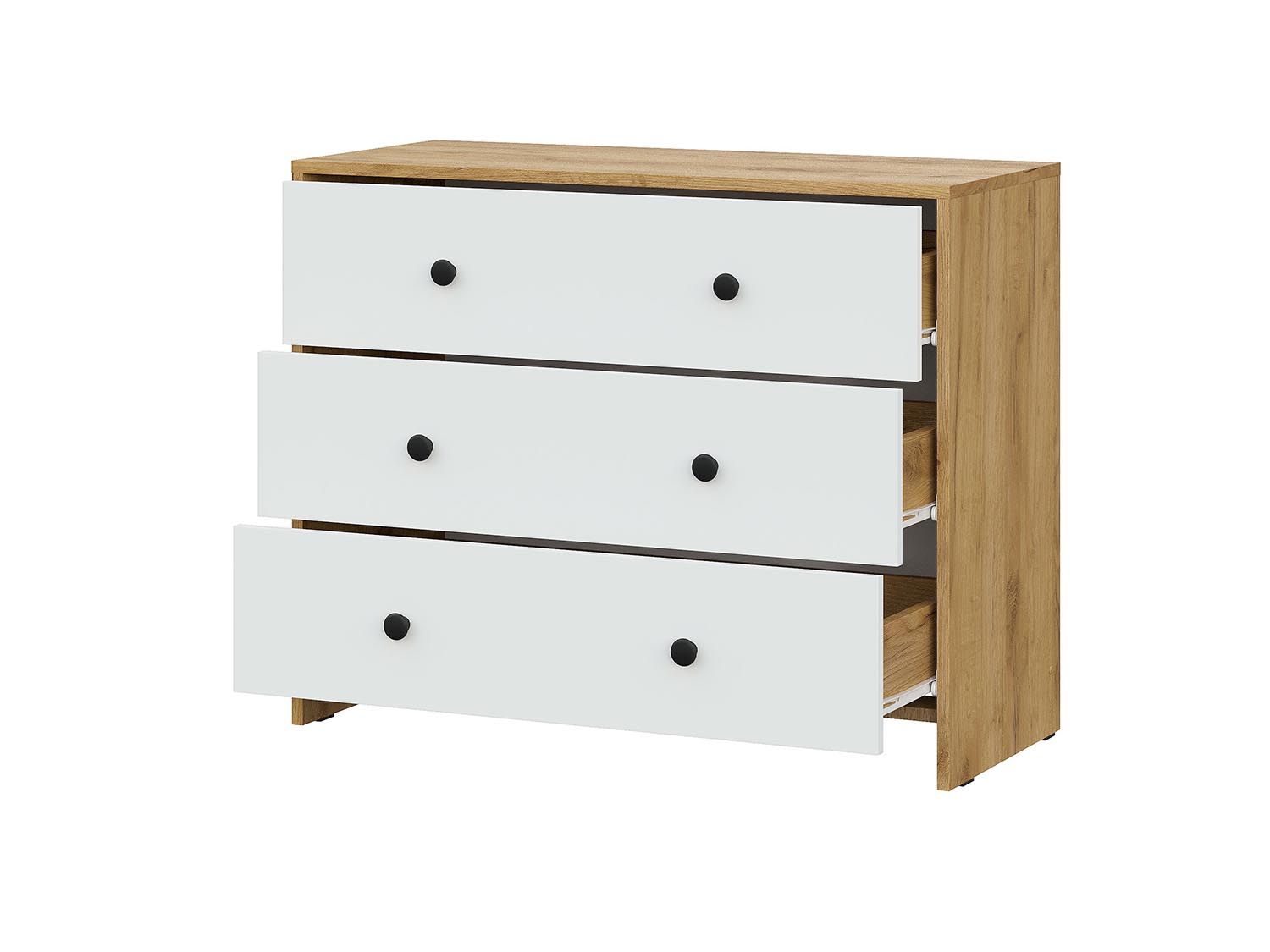 Дольче комод 3 ящика / Дуб золотой/Белый - вместительный предмет интерьера для хранения одежды или белья.