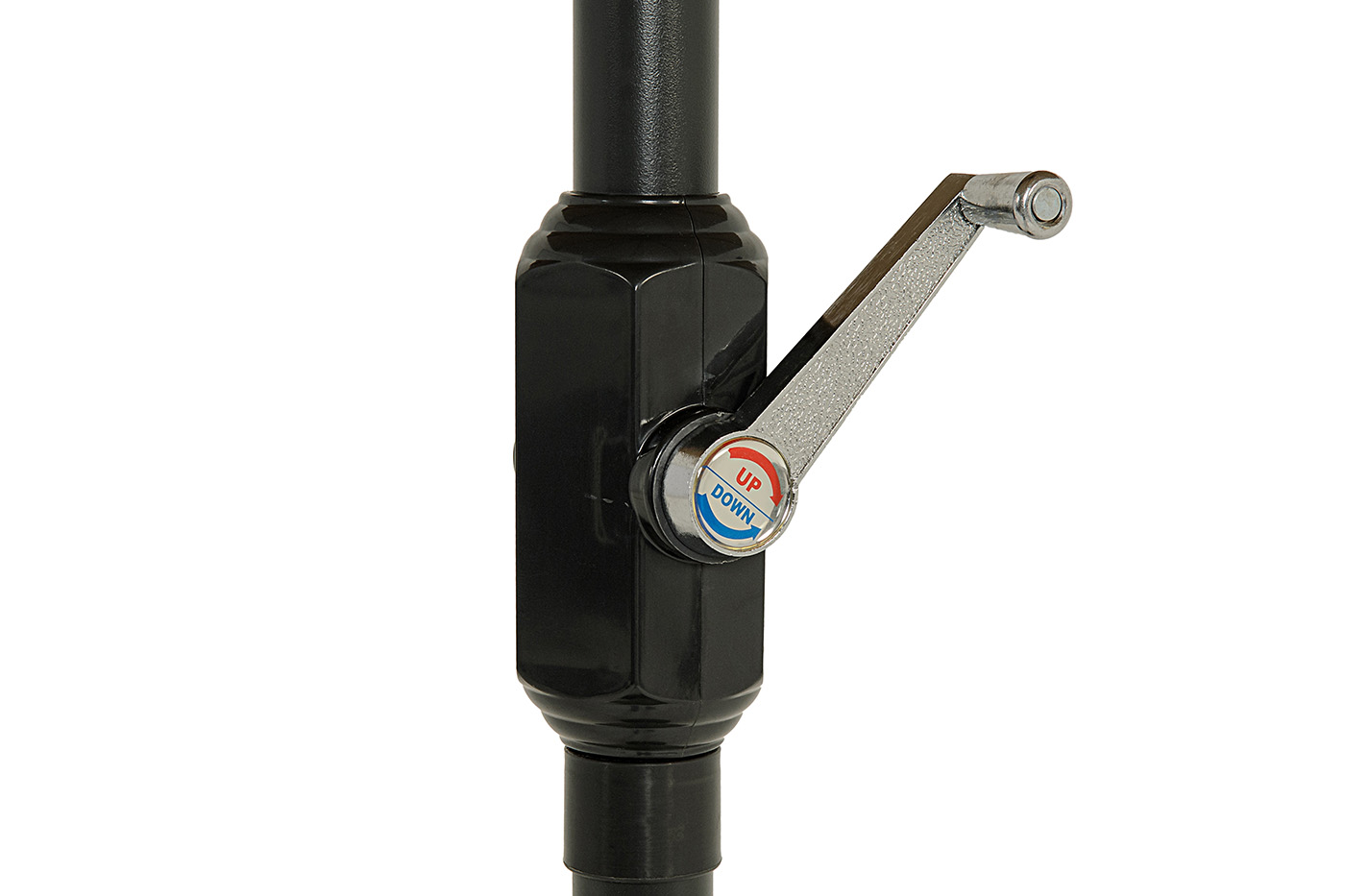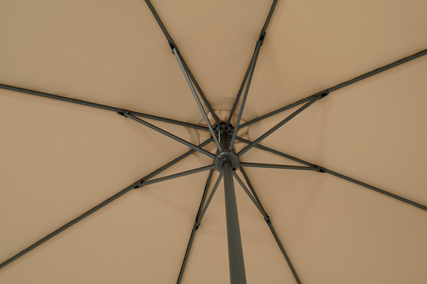 Зонт «Джулия» на центральной алюминиевой опоре с размером купола 3×3 м. Используется для установки во дворах, на пляжах, в парках или на любой открытой территории. Он служит для защиты от солнца, дождя и ветра. Высота от земли до нижнего края купола - 211 см.