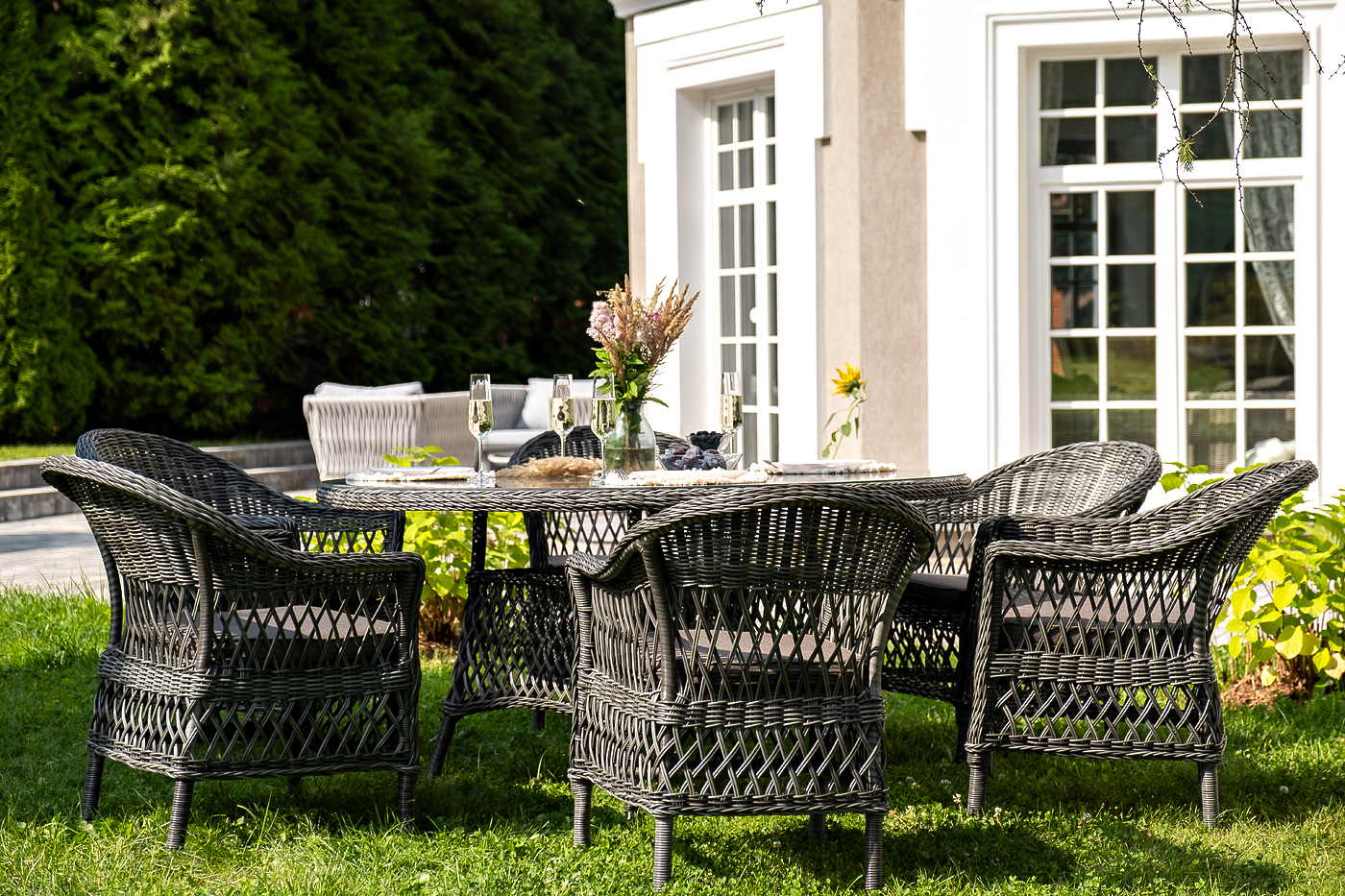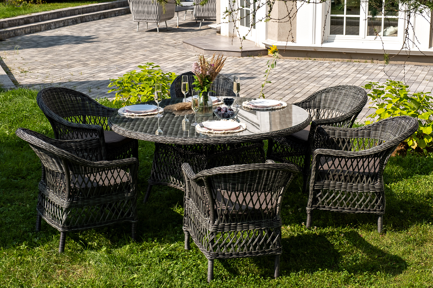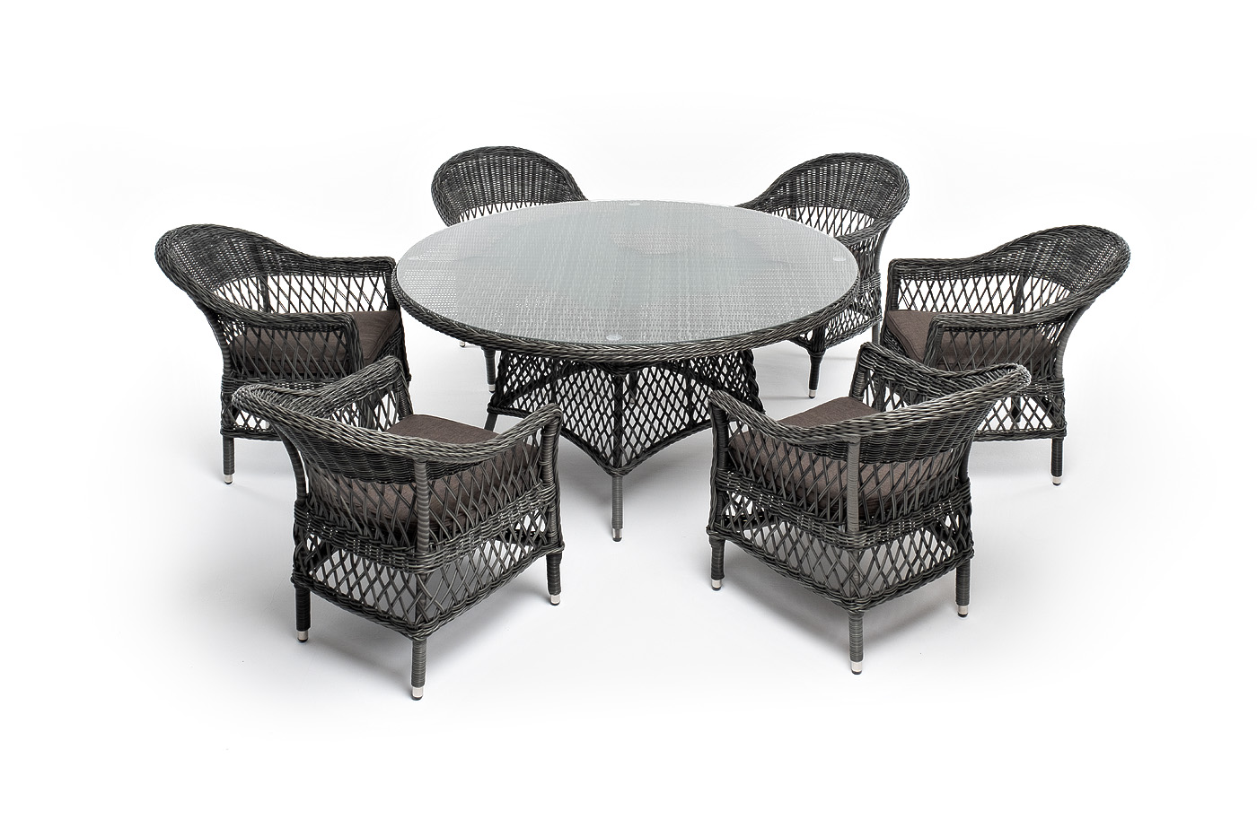 Высота сидения – 420 м "Сицилия" плетеный стул из искусственного ротанга, цвет графит 6шт. 590Х640Х820, "Эспрессо" плетеный круглый стол, диаметр 150 см, цвет графит 1шт. 1 500Х1 500Х750,