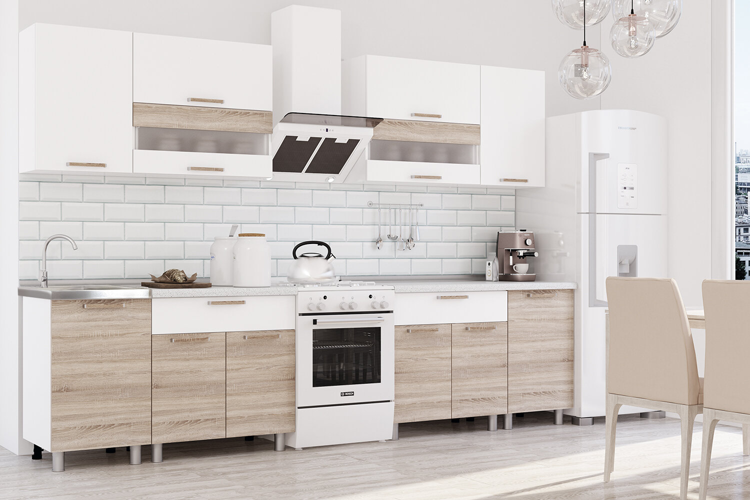 Классическое сочетание белого цвета с древесной фактурой - лучшее решение для Вашей кухни.