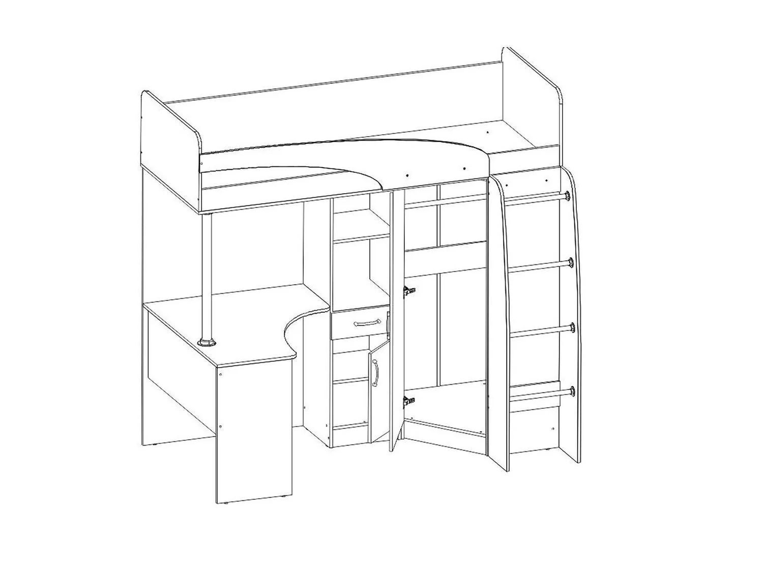 Внизу стол для занятий, шкаф и пенал для хранения.