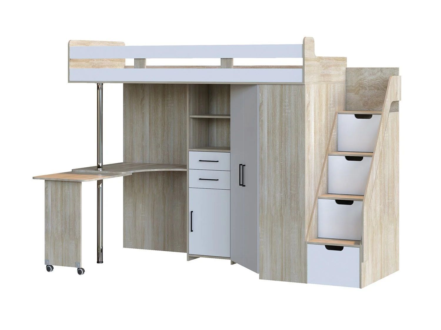 Карамель 77-03 кровать-чердак 2х этажная Дуб Сонома / Белый - универсальный предмет интерьера для детской комнаты.