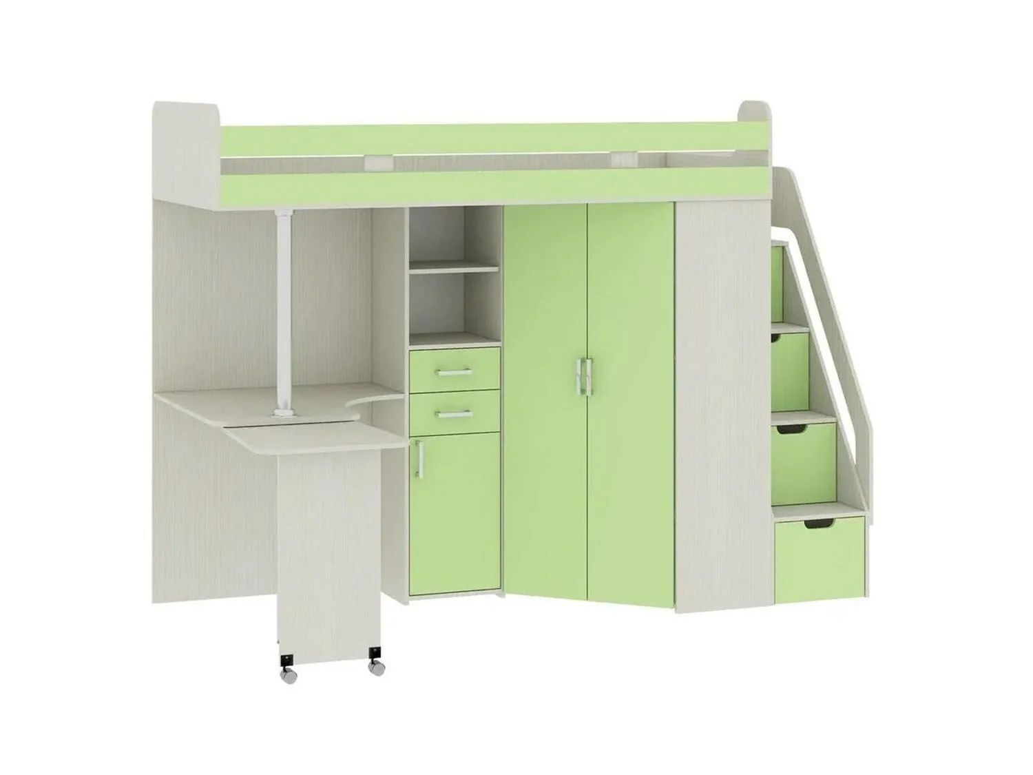 Карамель 77-03 кровать-чердак 2х этажная Ясень анкор Светлый / Зеленый - универсальный предмет интерьера для детской комнаты.