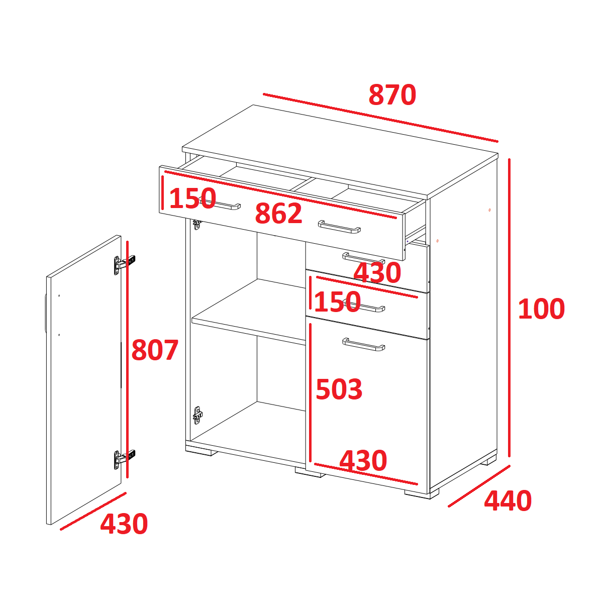 Вместительный комод Теана - отличное решение для хранения. Содержит выдвижные ящики и ниши за дверцами.