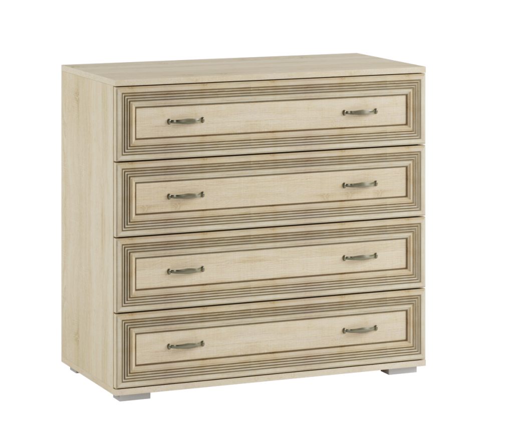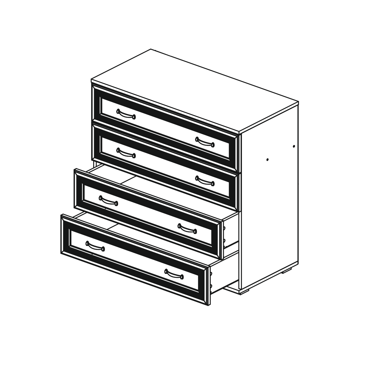 Классический комод с четырьмя выдвижными ящиками, каждый из которых оснащен двумя ручками для аккуратного открывания. Вместительный и небольшой вариант для хранения белья.Материал фасада:Рамочный профиль из МДФ, 3D-вставка из МДФ.Материал корпуса:ЛДСП.Фурнитура:«Старая бронза» 96 мм.Установлены петли с доводчиками для бесшумного закрывания и шариковые направляющие полного выдвижения.