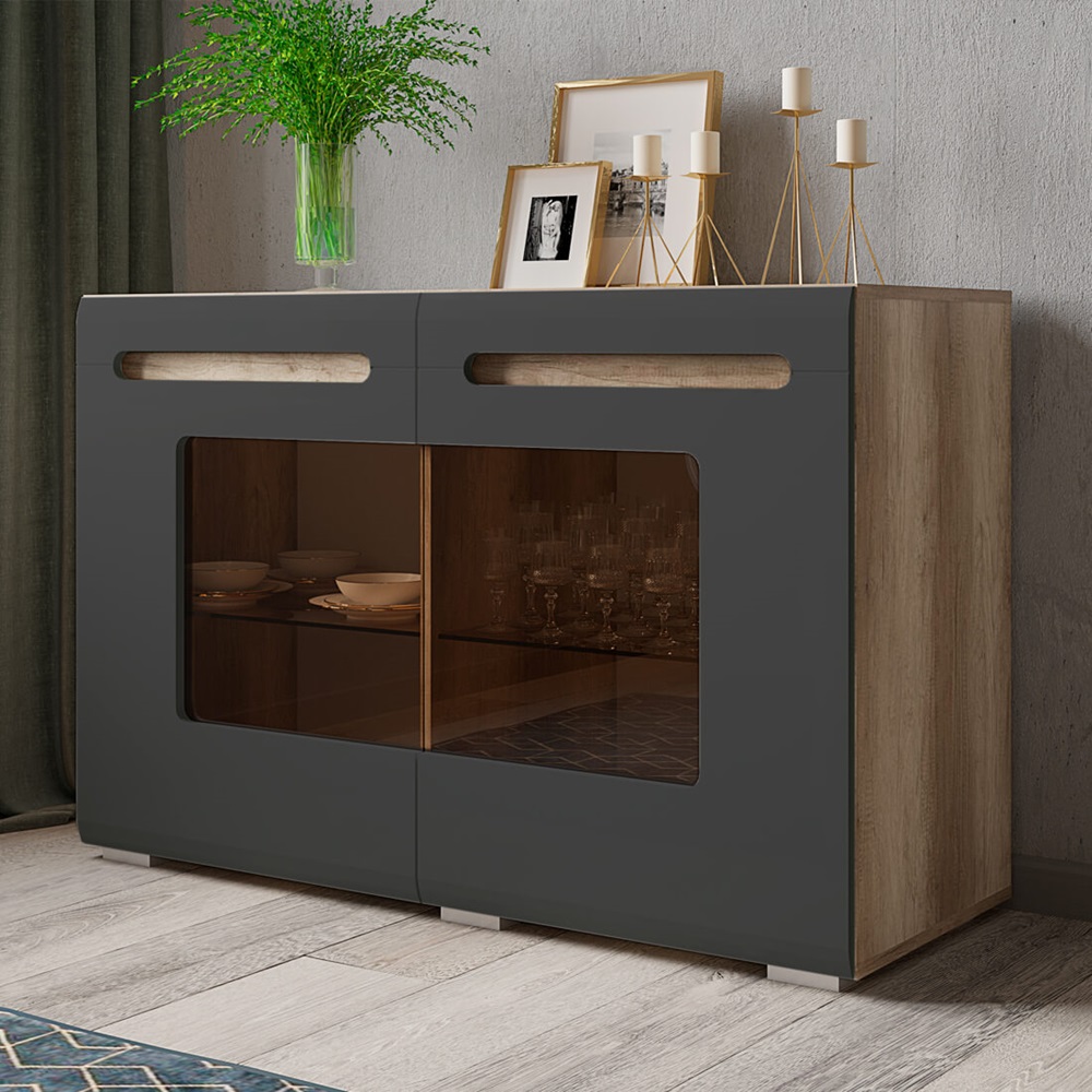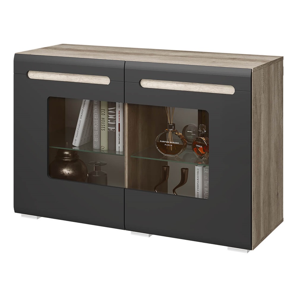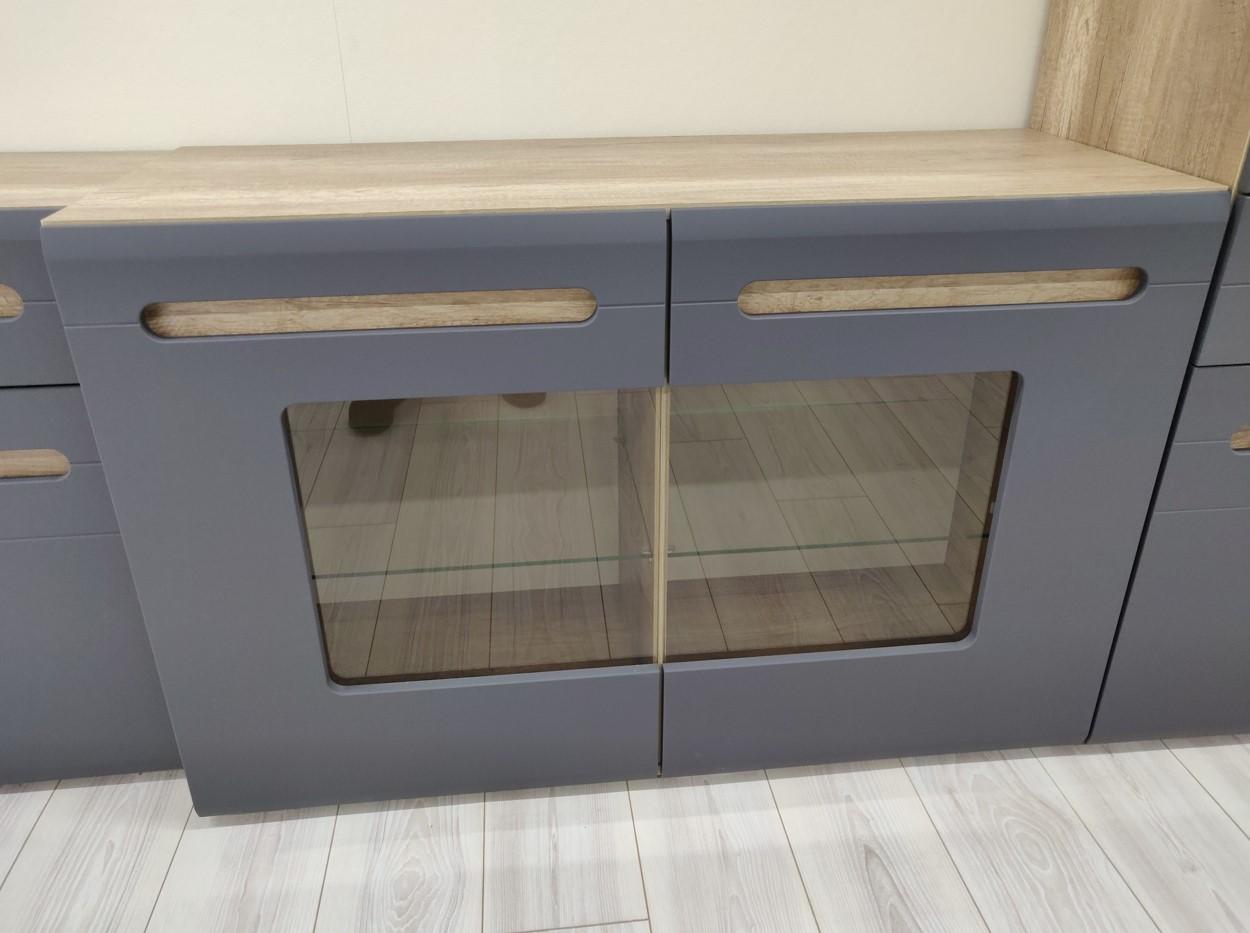 Комод Наоми КМ-10 в цвете дуб каньон/графит — это стильное и функциональное дополнение для любой комнаты. Он имеет уникальную геометрию фрезерованных фасадов, создающую атмосферу ультрасовременности и минимализма. Сочетание матового декора корпуса из дуба каньон с глянцевыми створками придаёт спокойствие и экологичность.
