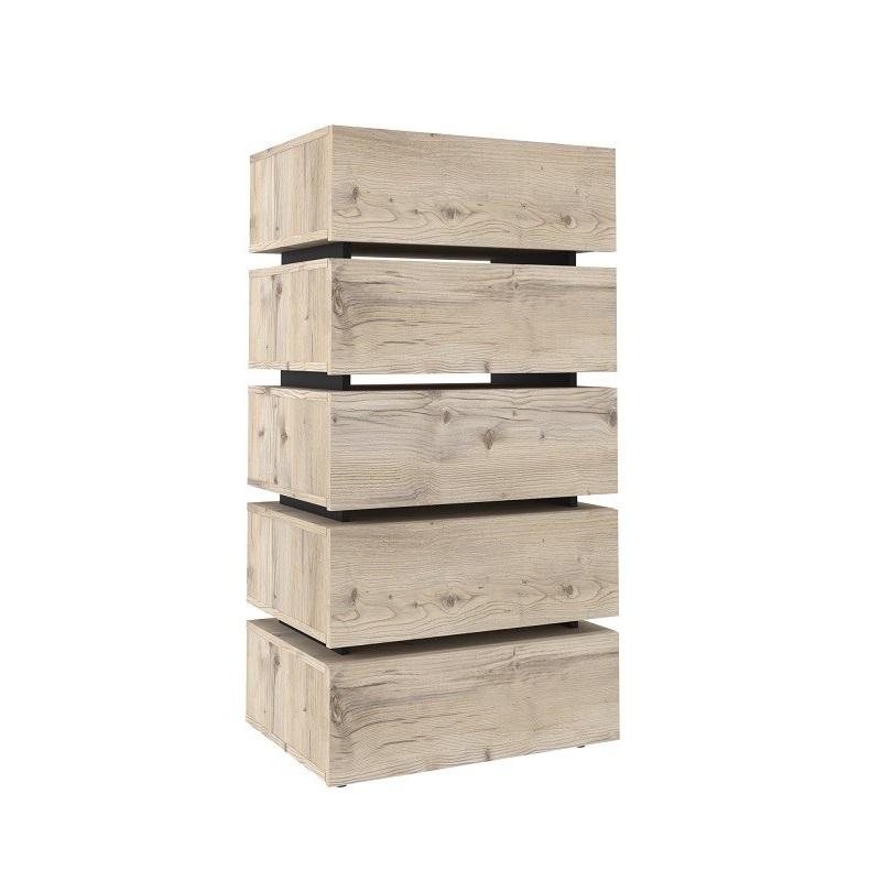Для маленькой гостиной отлично подойдет высокий и узкий комод Nature 6. Стилевое решение комода делают его особенным, а гладкие фасады теплого оттенка дерева - сдержанным и одновременно очень уютным. Пять выдвижных ящиков глубиной 14 см способны вместить все необходимое, а компактная конструкция сэкономит место в комнате. Ящики легко открываются за свес благодаря направляющим полного выдвижения. Они быстро и легко устанавливаются при сборке комода. Регулируемые опоры компенсируют незначительные неровности пола.