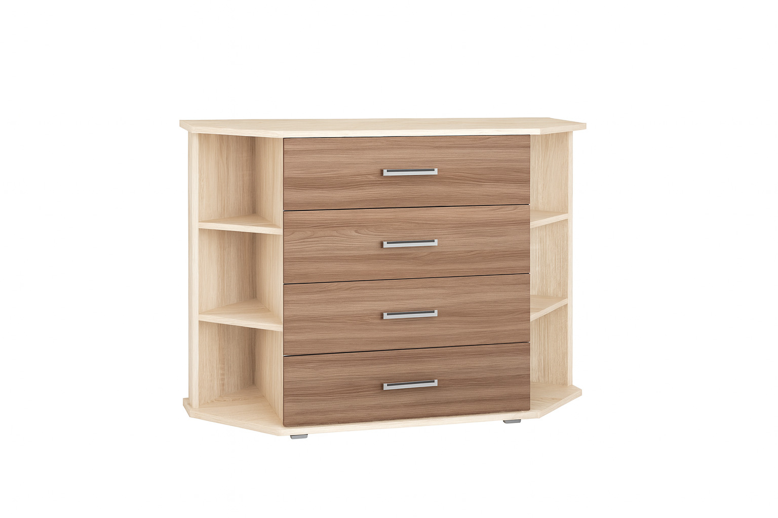 — Угловой комод с открытыми полками и выдвижными ящиками