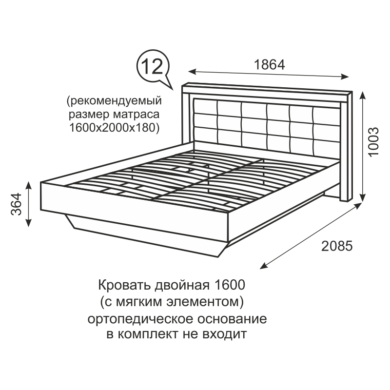 Двуспальная кровать Люмен с ортопедическим основанием как будто парит над поверхностью пола.