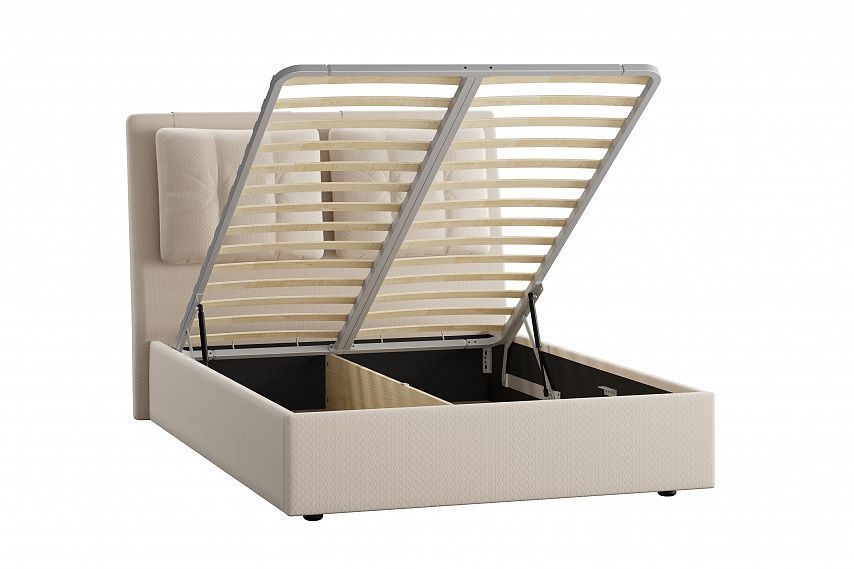 Модель оснащена подъемным механизмом и ящиком для белья.