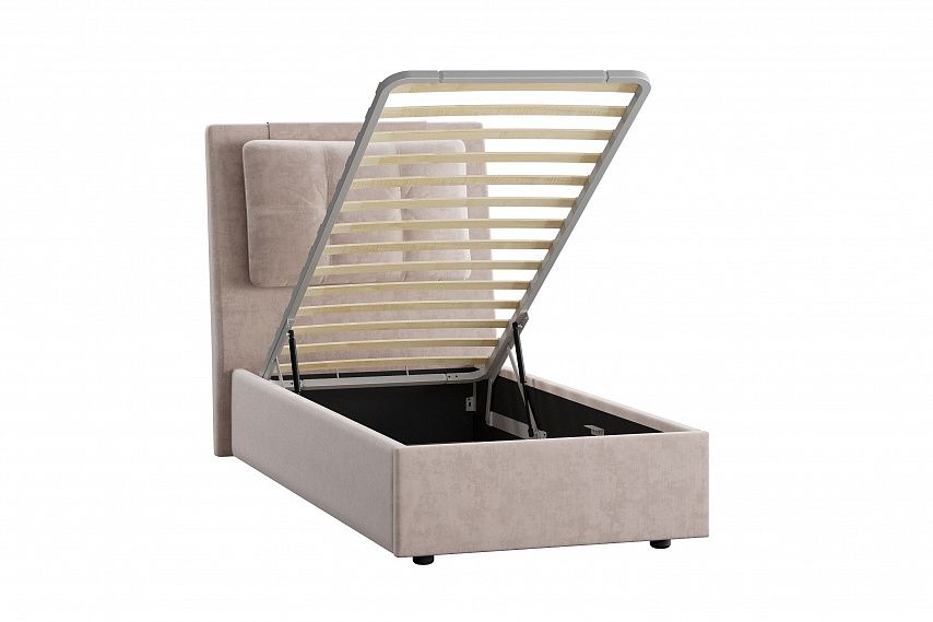 Модель оснащена подъемным механизмом и ящиком для белья.
