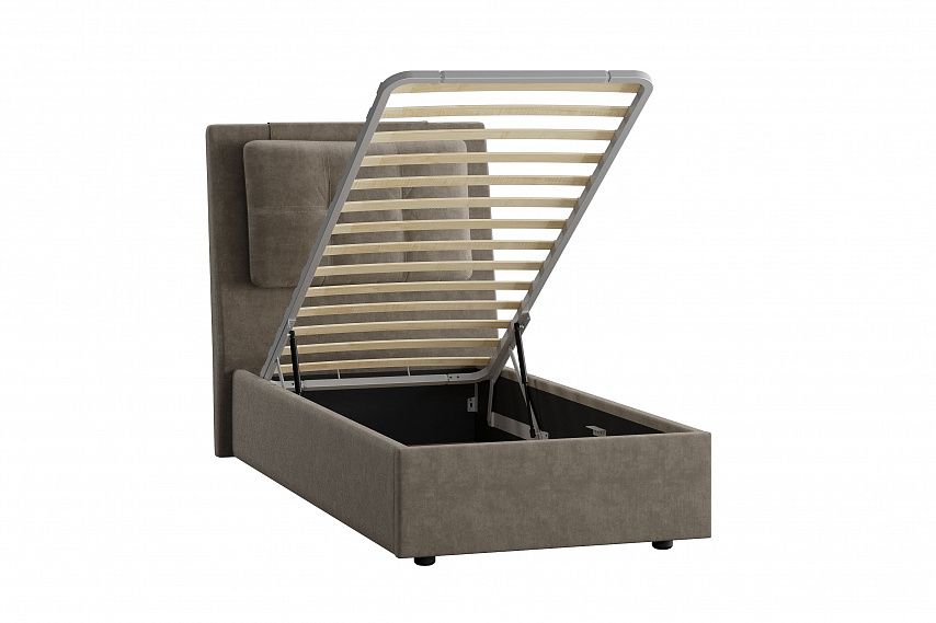 Модель оснащена подъемным механизмом и ящиком для белья.