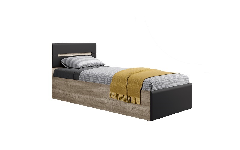 Односпальная кровать - центральный предмет мебели в спальне.Изголовье и ножной щиток кровати выполнены из МДФ со скругленной фрезеровкой. Настил ЛДСП в комплекте, матрас приобретается отдельно.