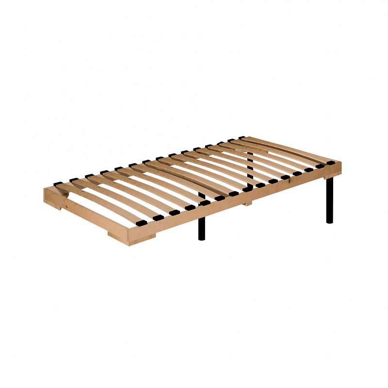 Кровать комплектуется стационарным ортопедическим основанием с каркасом, изготовленным из дерева. Такое основание экологично и выдерживает большую нагрузку по сравнению с металлическим: допустимая нагрузка на кровать, включая вес матраса - 350 кг.