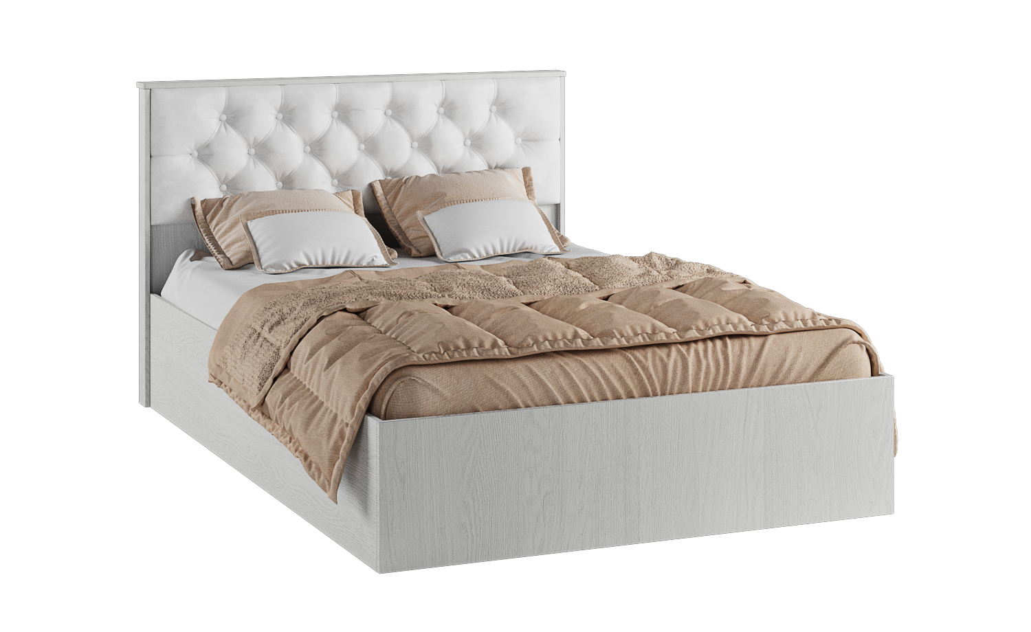 Кровать из коллекции Модена станет украшением Вашей спальни. Спинка кровати комплектуется мягкой белой вставкой из экокожи со стяжкой, что дарит Вам дополнительный комфорт и разбавляет интерьер. Комплектуется ортопедическим основанием на опорах.