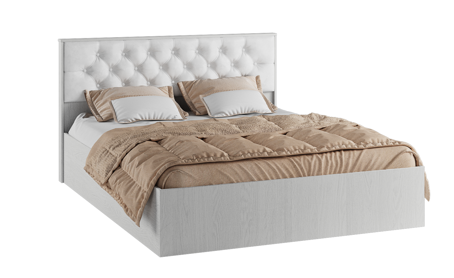 Кровать из коллекции Модена станет украшением Вашей спальни. Спинка кровати комплектуется мягкой белой вставкой из экокожи со стяжкой, что дарит Вам дополнительный комфорт и разбавляет интерьер. Комплектуется ортопедическим основанием на опорах.