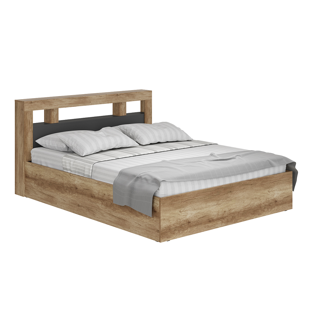 Новая модульная коллекция Прима в актуальном декоре дуб каньон/графит удачно впишется в современную обстановку Вашей квартиры и позволит организовать грамотное хранение вещей в гостиной и спальне. Приятный древесный оттенок корпуса гармонично дополнен матовым графитом, в котором исполнены фасады. Двуспальная кровать Прима станет центром Вашей спальни и подарит много часов комфортного сна и отдыха. Рекомендованный вес матраца 20-30 кг.