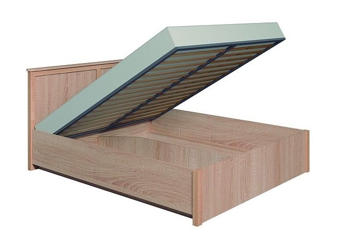 Двуспальная подъемная кровать - рациональное решение для маленькой квартиры, где на счету каждый квадратный милиметр. Стандартный максимальный размер спального места кровати - 140х200 см. Такой размер позволяет супругам отдыхать с комфортом и не испытывать неудобств, если маленькие ножки вскарабкаются ночью на кровать, избегая ночных кошмаров. В коллекции Sherlock два вида кроватей - с глухим строгим изголовьем и с решетчатым. Второй вариант смотрите здесь:Sherlock 46 Кровать ЛюксРекомендуемая высота матраса - до 23 см, вес - до 70 кг. Он "утопает" в корпус кровати на 7 см. Верхняя фигурная планка на изголовье из толстой плиты ЛДСП шириной 7 см. Данная кровать комплектуется основанием с подъемным механизмом с улучшенными газовыми пружинами. Распределенная нагрузка на такую кровать составляет 300 кг с учетом веса матраса. Основание опирается на центральную царгу из ЛДСП и металлические кронштейны по бокам. Внимание: пока на основание не положили матрас, оно не опускается! Листы ХДФО свободно кладутся на дно ко