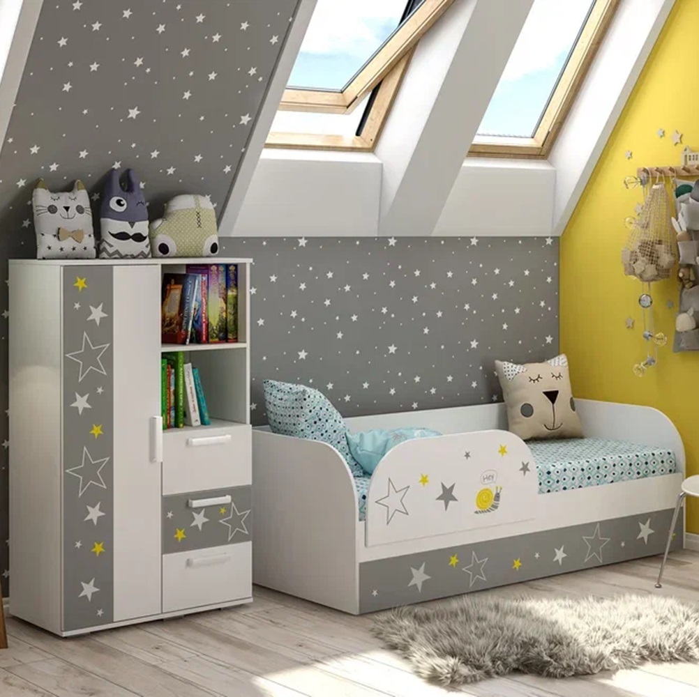Детская кровать Трио с подъёмным механизмом КРП-01 в цвете «звёздное детство» — это стильная и функциональная модель для вашего ребёнка. Она оснащена удобным подъёмным механизмом, который обеспечивает доступ к ящикам для хранения белья. Каркас кровати изготовлен из высококачественных материалов, что гарантирует долгий срок службы.