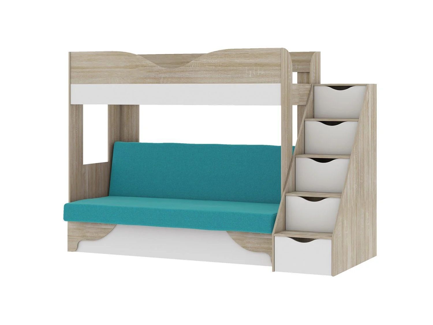 Латте 77-01 кровать-диван Дуб сонома / Аляска / Велюр Морская волна - готовое решение для двух спальных мест в детской комнате.