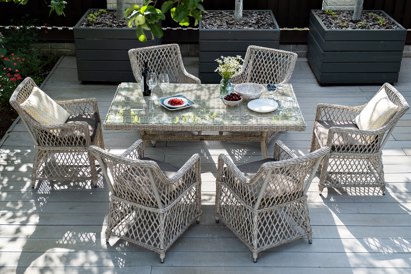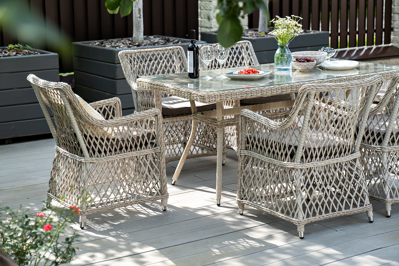 Ротанговая обеденная группа «Латте» для создания зоны отдыха в саду, обустройства веранды отеля или ресторана.