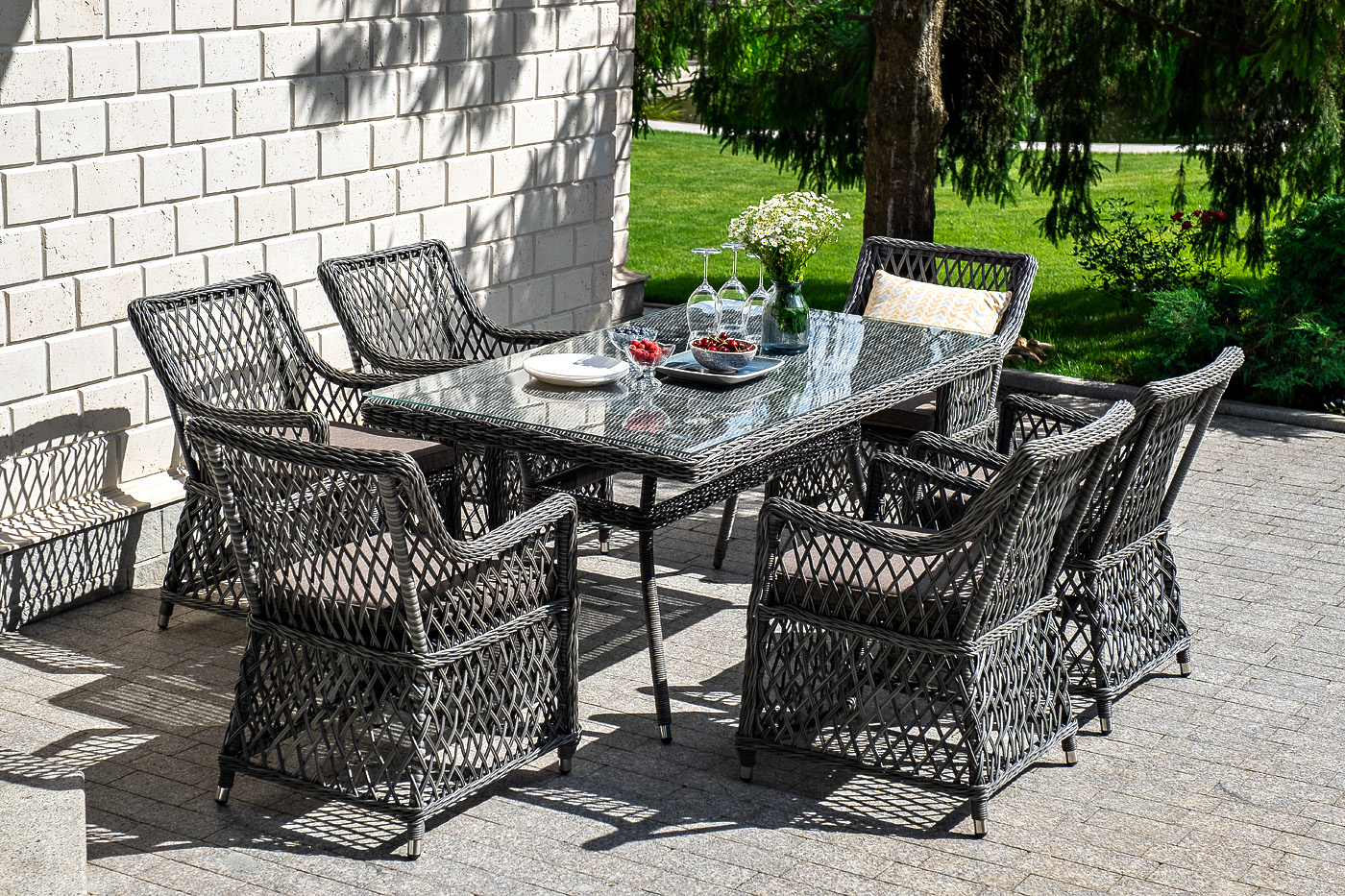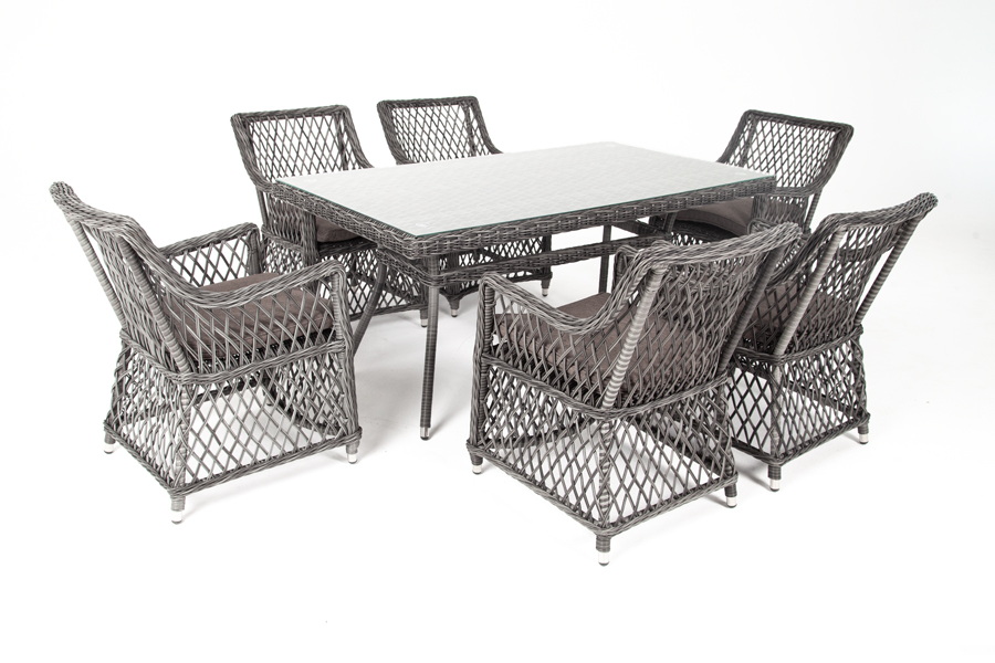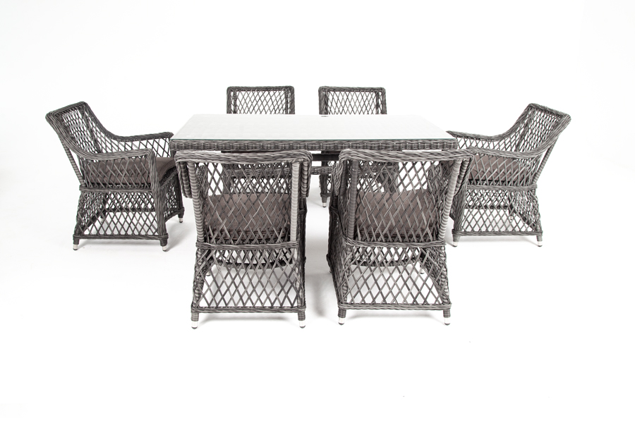 Высота спинки – 460 мм. "Латте" плетеный стол из искусственного ротанга 160х90см, цвет графит 1шт. 1 600Х900Х750, "Латте" плетеное кресло из искусственного ротанга, цвет графит 6шт. 550Х660Х850,