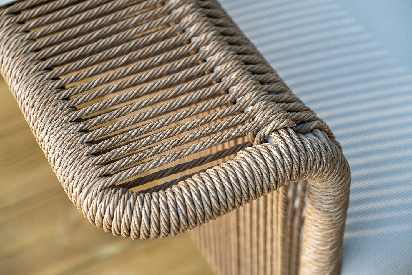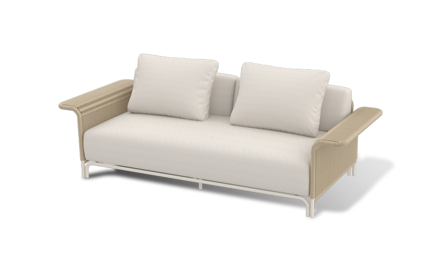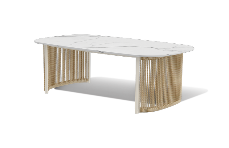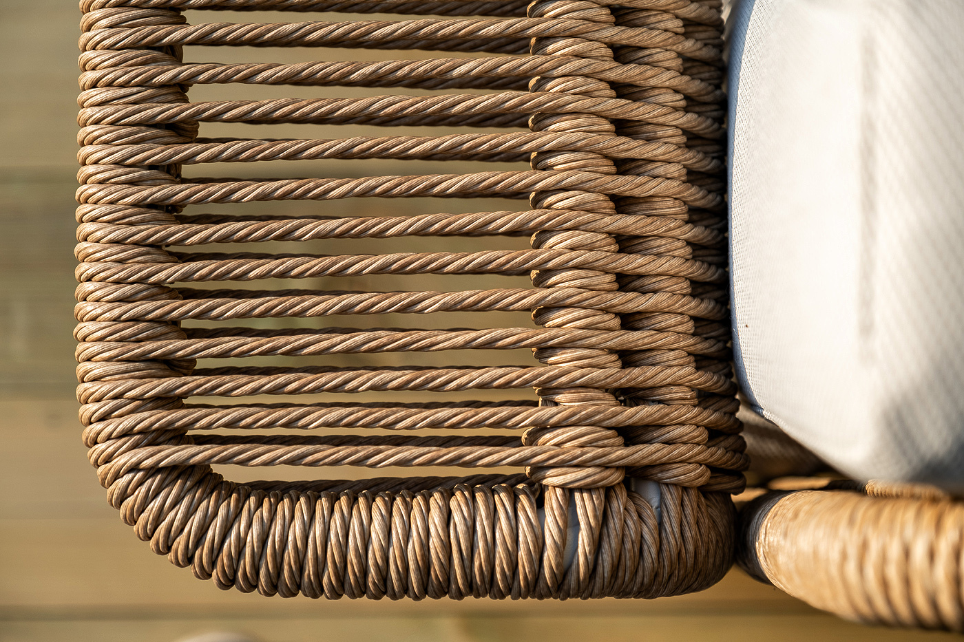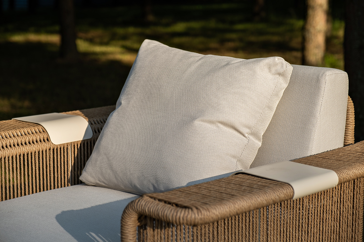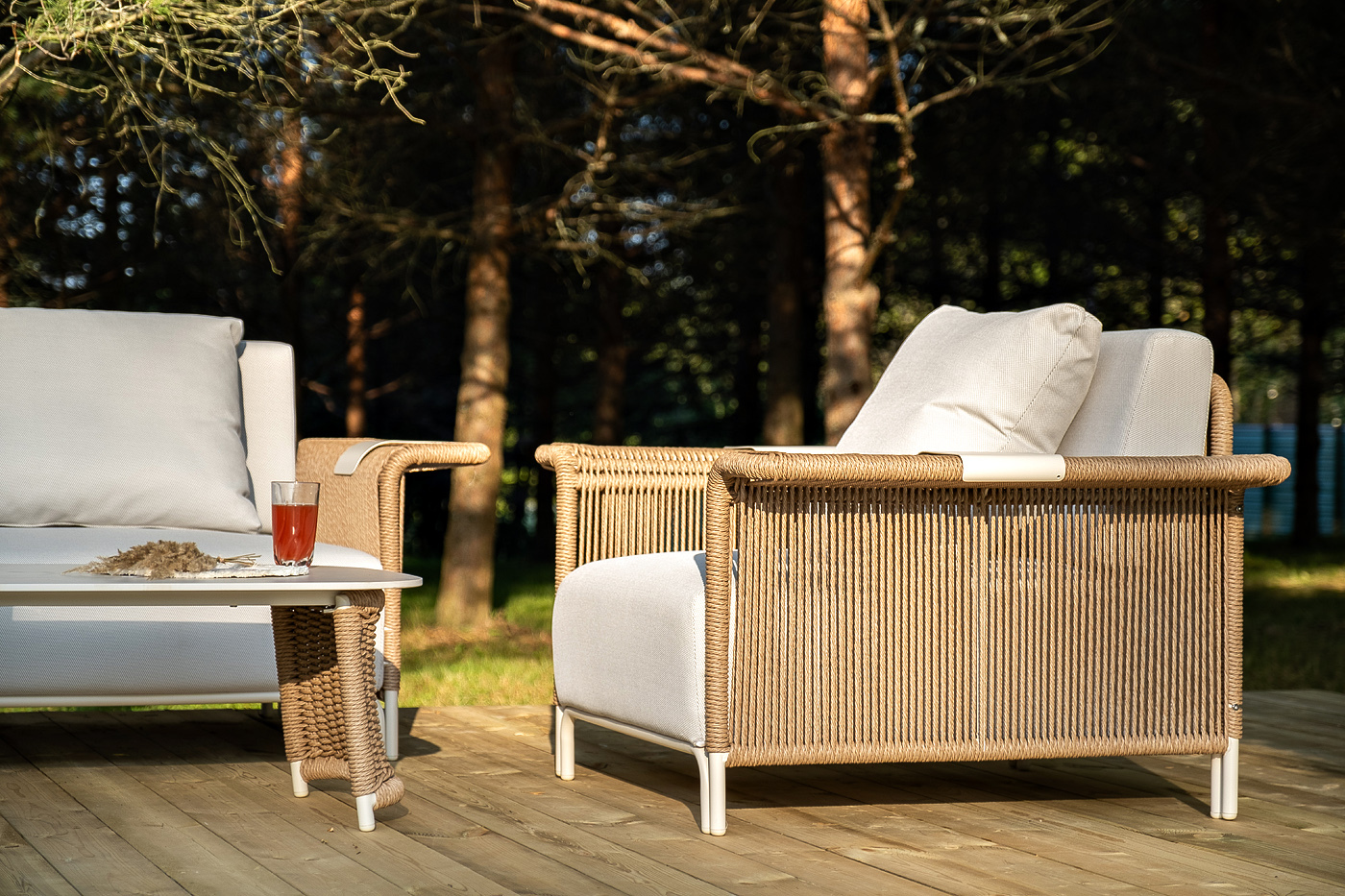 Комплект выполнен из алюминиевого каркаса, окрашенного порошковой износостойкой краской. Оттенок - «слоновая кость». Искусственный ротанг соломенного цвета украшает мебель в качестве круглого ручного плетения - 7 мм.