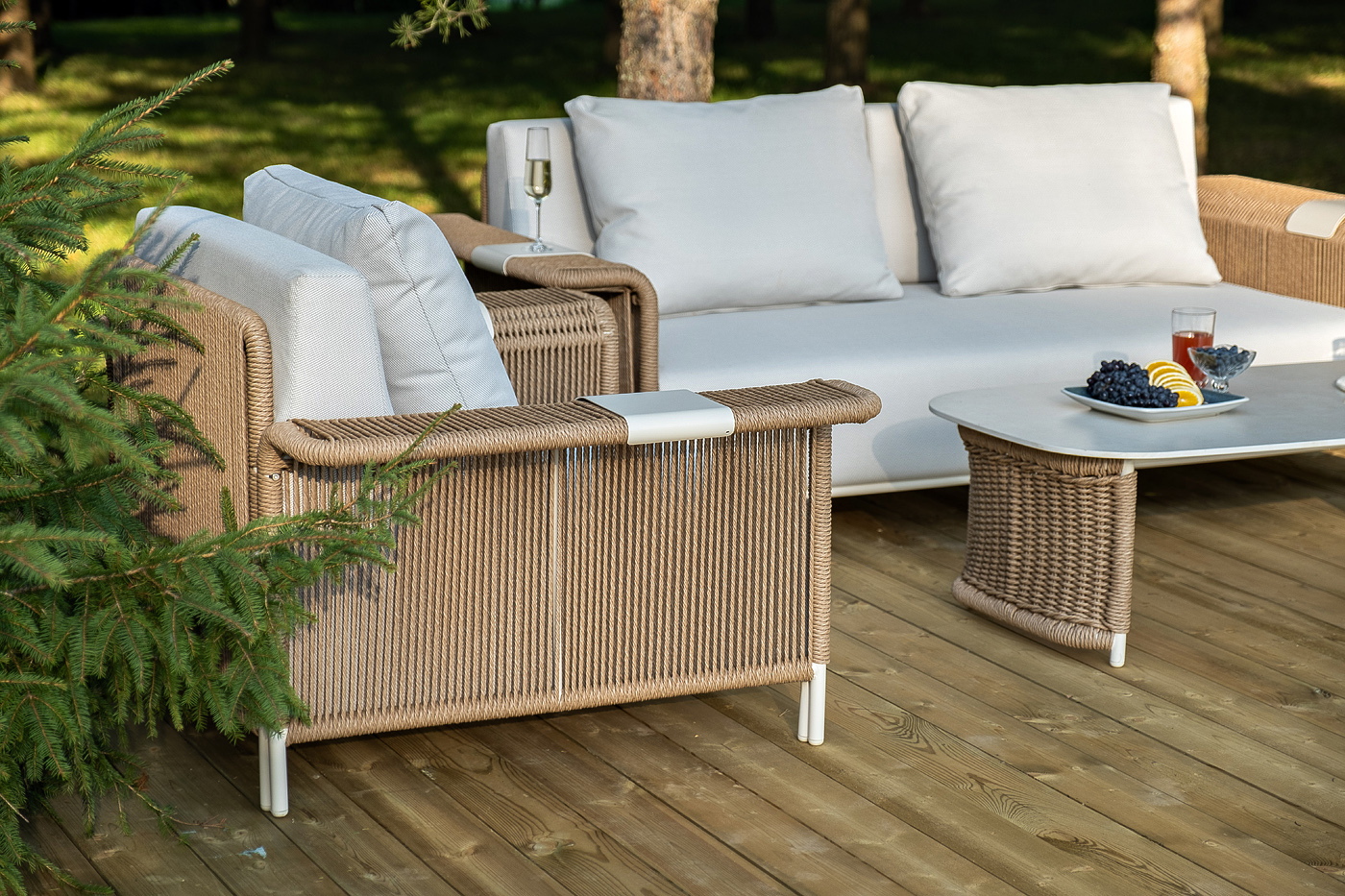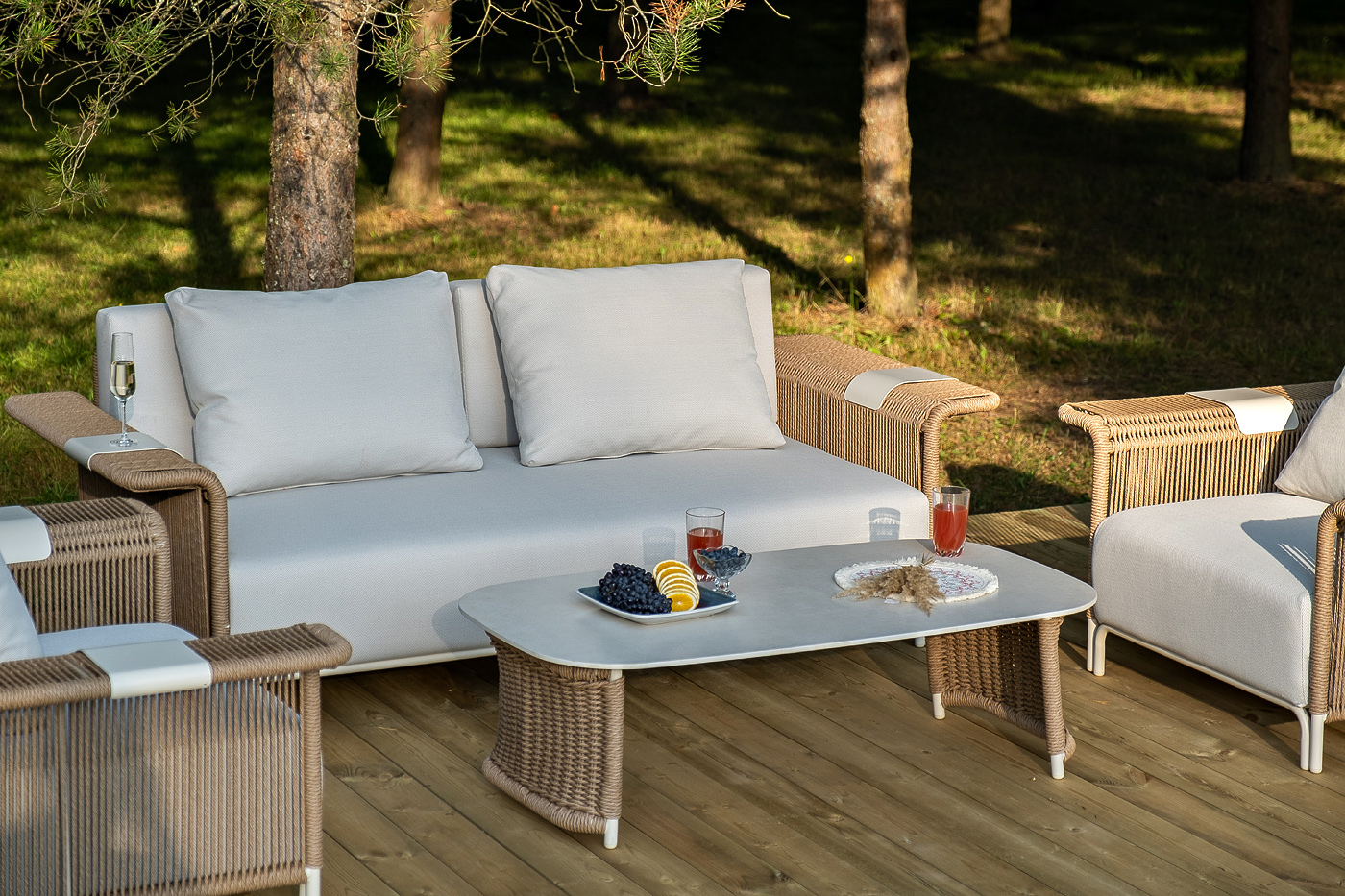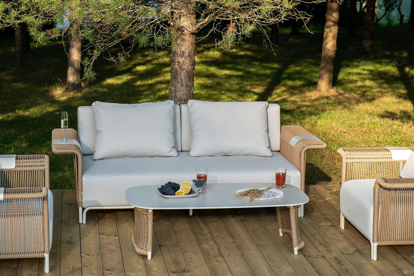 Комплект для лаунж-зоны «Мальдивы» рассчитан на 4 персоны.