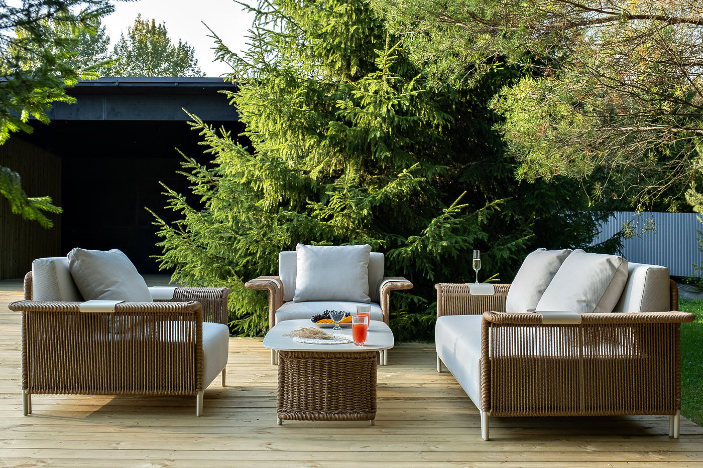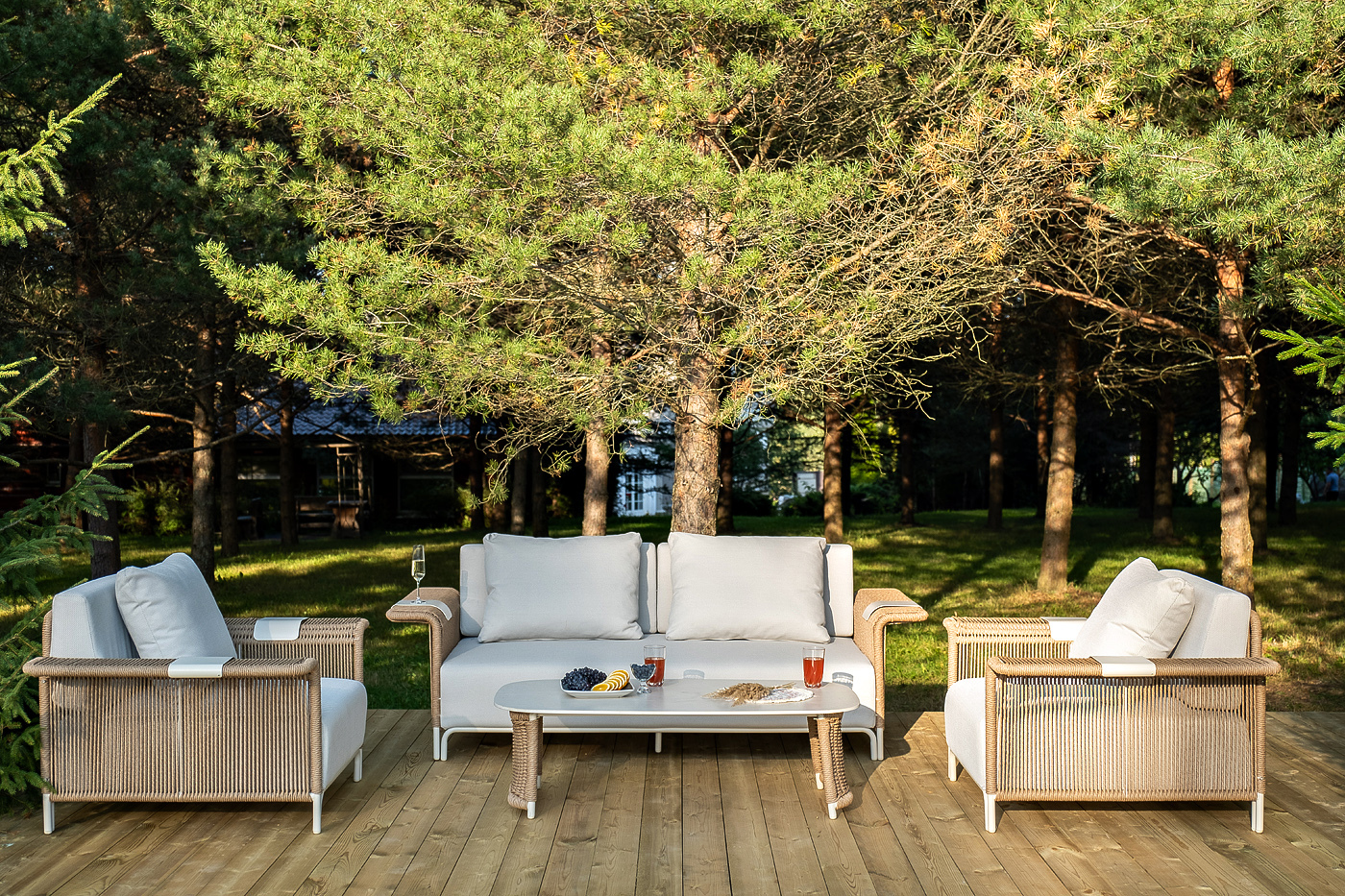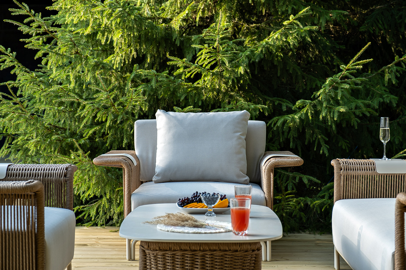 Комплект для лаунж-зоны «Мальдивы» рассчитан на 4 персоны.