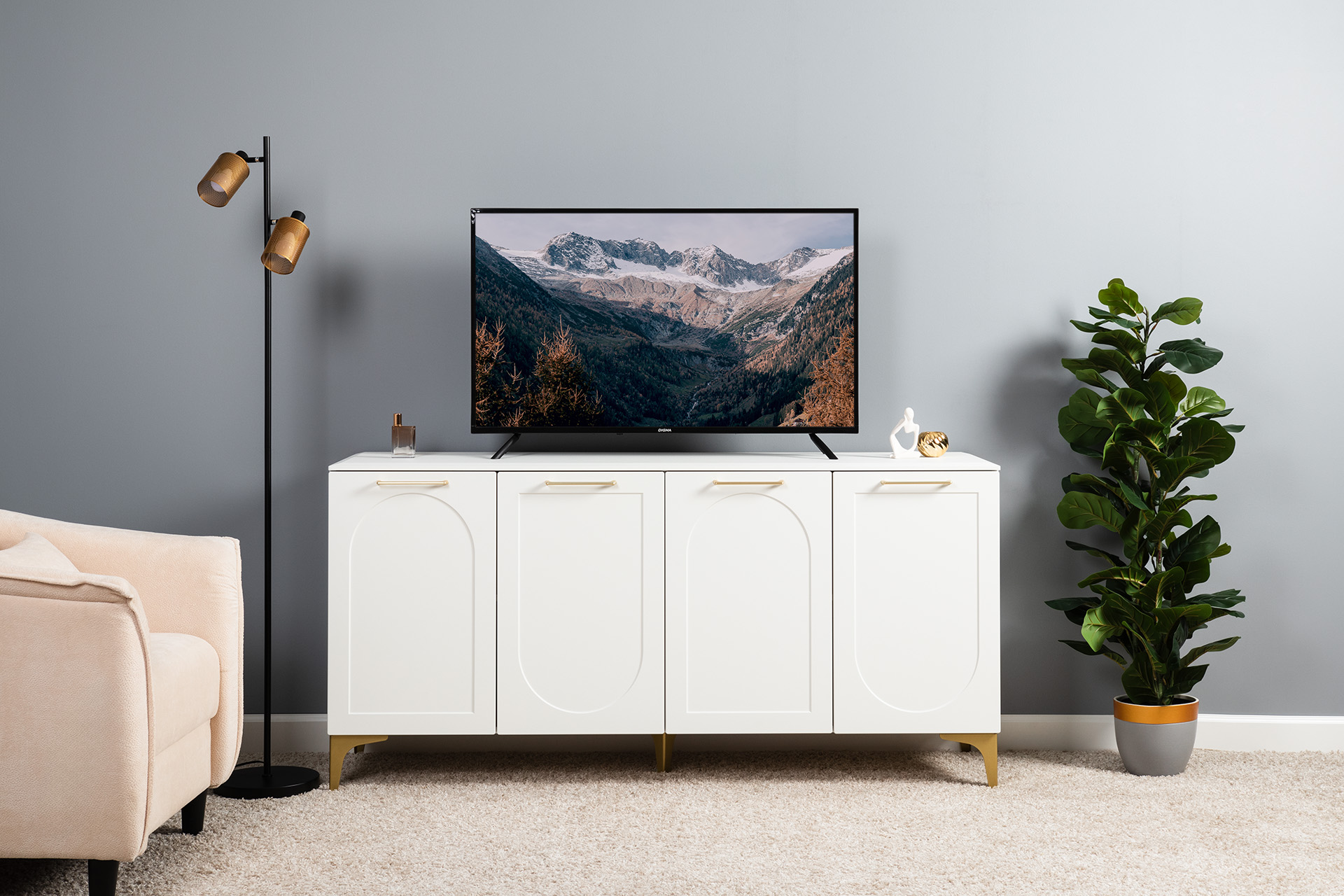 Монтесито Тумба под ТВ 16.67 Белый шагрень разместит большой современный телевизор в любой комнате.