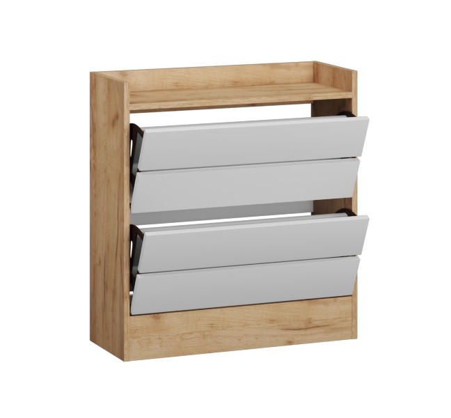 Обувница Ямайка - компактный вариант хранения Вашей уличной и домашней обуви и гарантия порядка в прихожей. Модель имеет увеличенную ширину и 2 откидные ниши, в которых поместятся сразу несколько пар обуви. Сверху Вы можете расположить ключи, аксессуары и другую мелочевку, без которой не обойтись во входной зоне. Модуль прекрасно сочетается с зеркалом из данной коллекции.