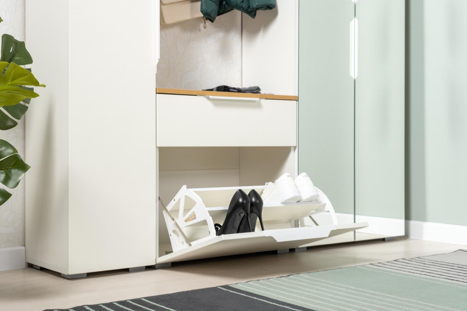 Конструкция с откидной секцией для обуви.