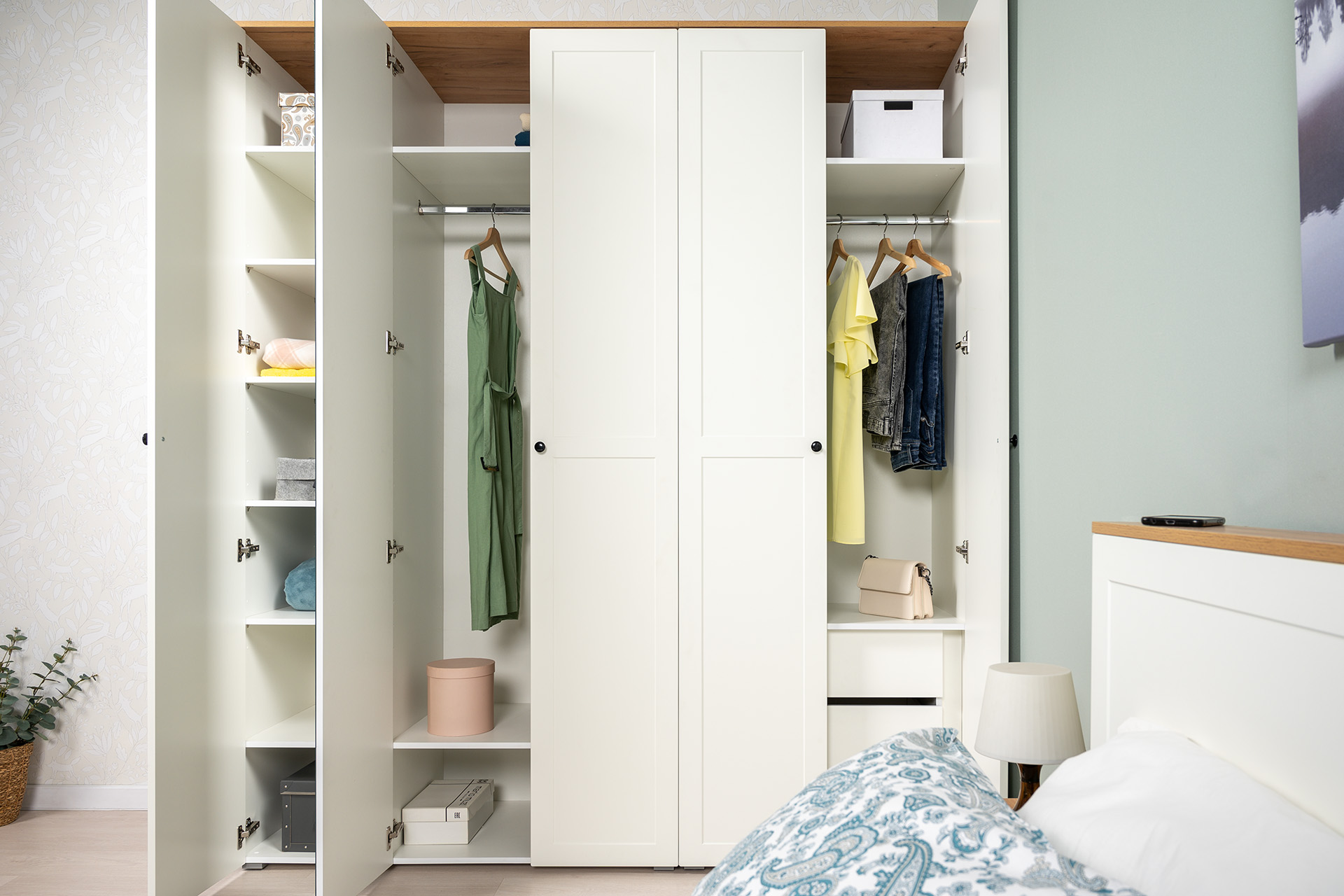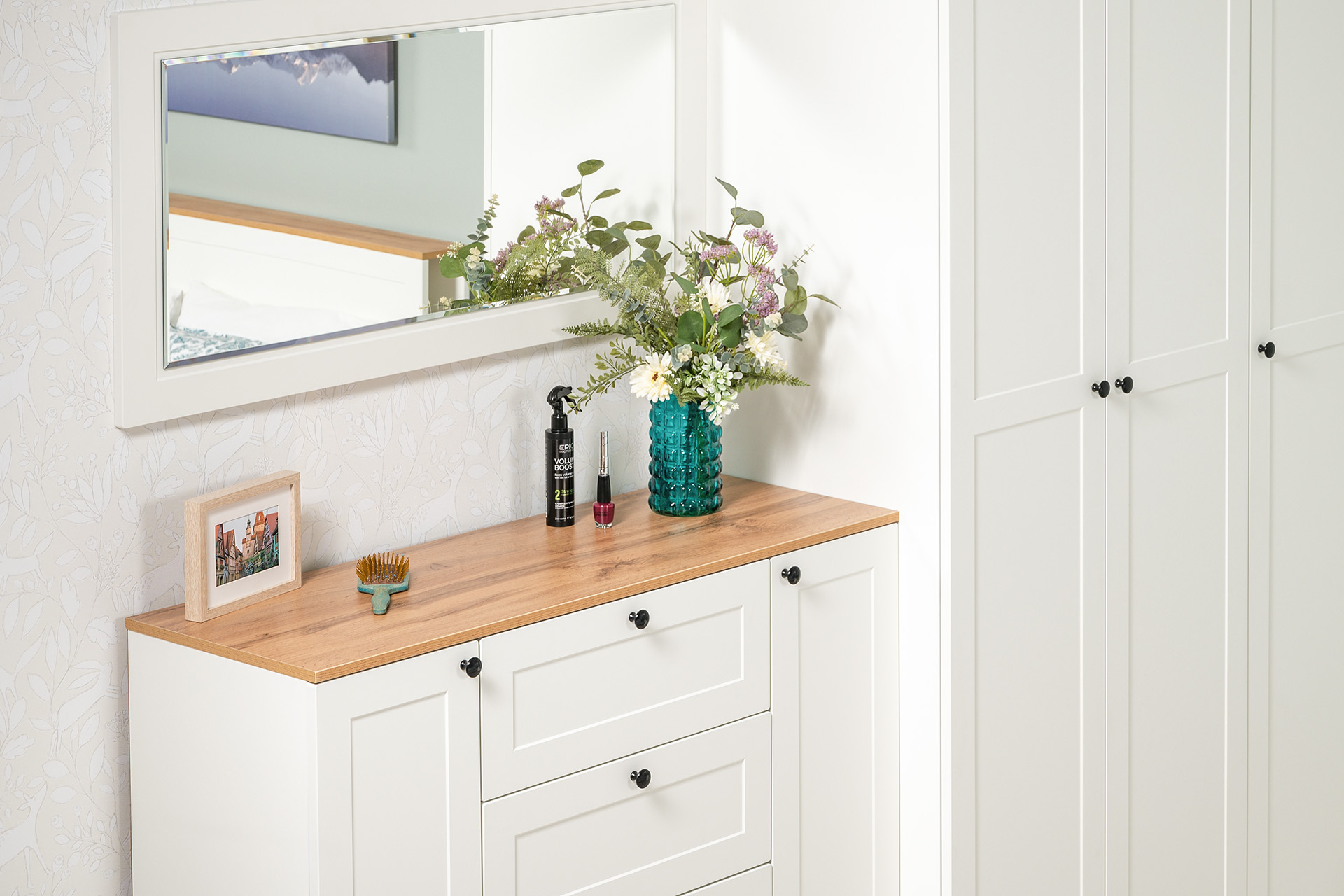 Остин Спальня 3 белый/дуб золотой - стильный комплект мебели для современной спальной комнаты.