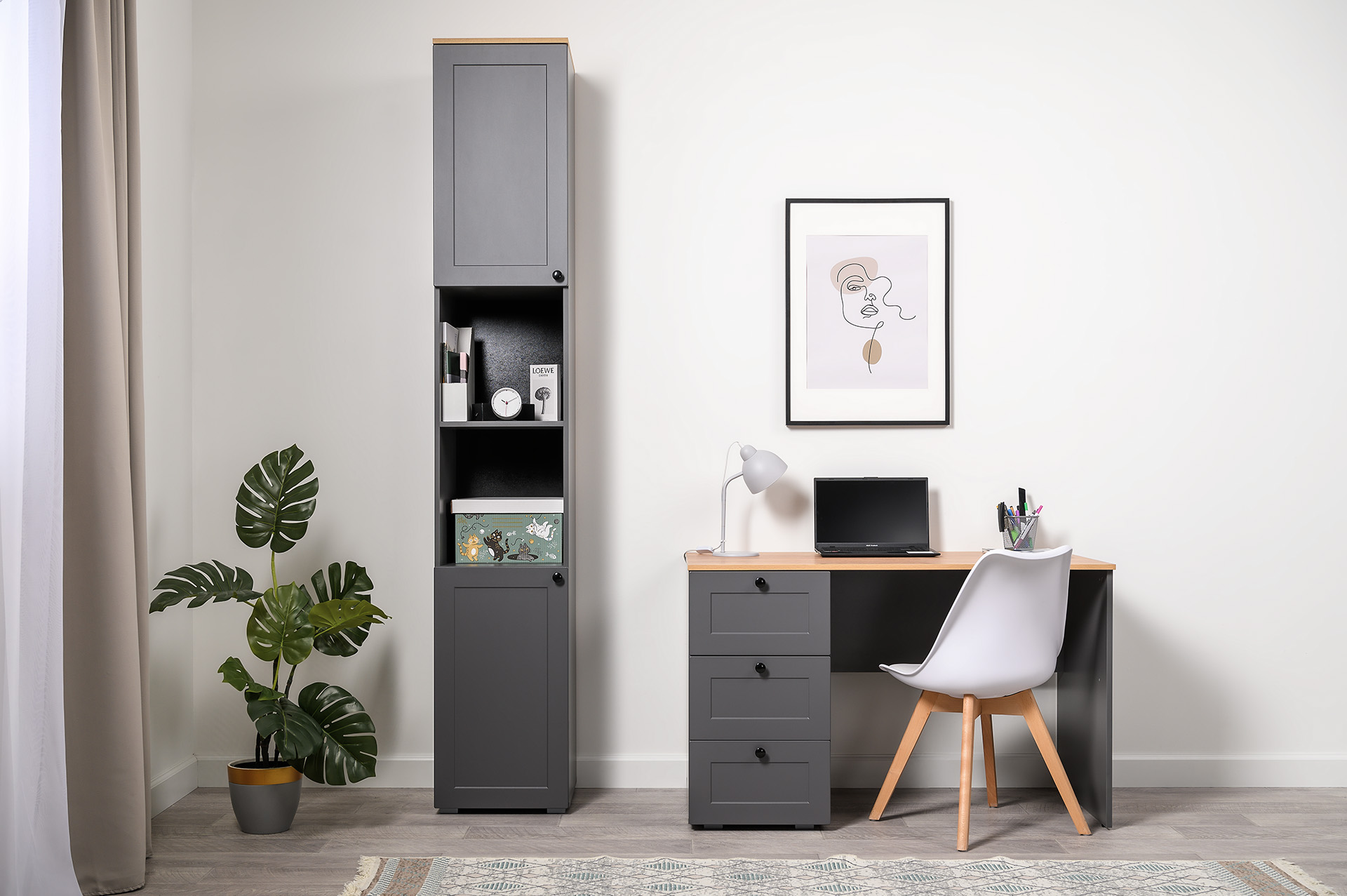 Остин Стол письменный 12.159 Серый графит/Дуб Вотан станет основой рабочей или ученической зоны.