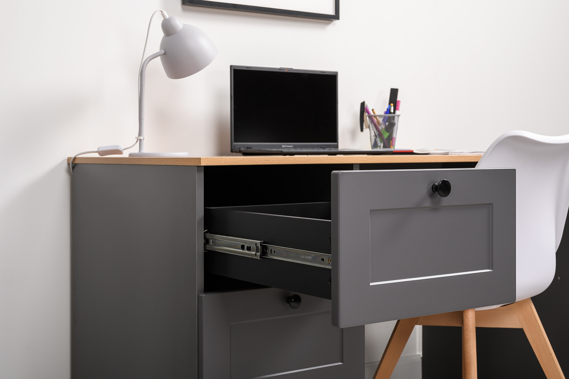 Внутри 3-и выдвижных ящика.