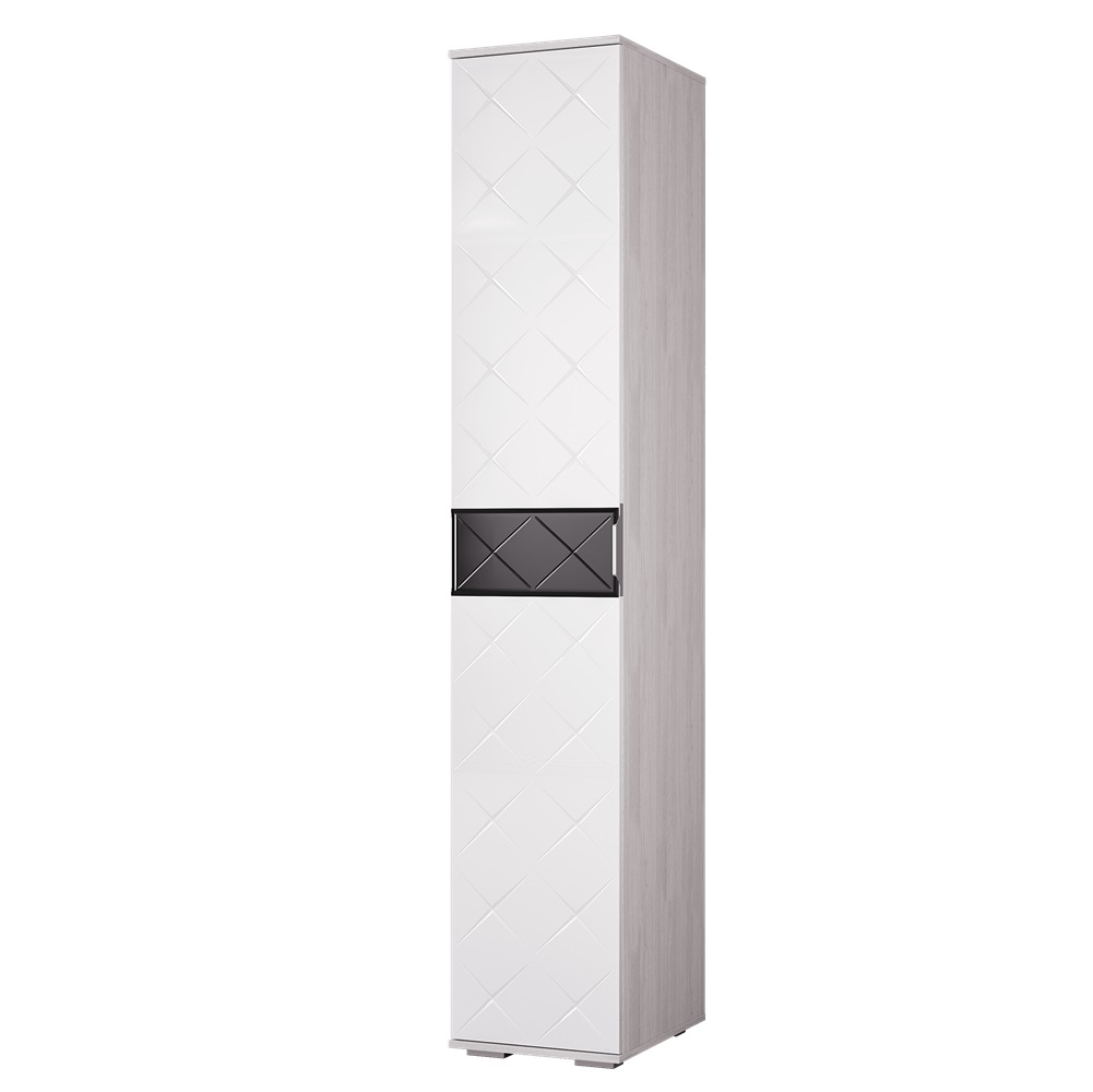 Кимберли Шкаф (Пенал) ПН-16 в цвете ясень белый/белый глянец — это стильный и функциональный элемент интерьера, который добавит комфорт и порядок в вашу комнату. Он имеет одну дверь, верхнюю и нижнюю полки, а также зеркало на двери. Благодаря компактным размерам и современному дизайну, этот шкаф отлично впишется в интерьер и станет незаменимым помощником в хранении вещей.