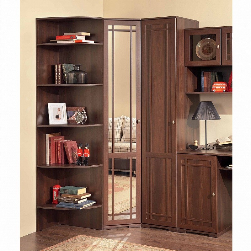 Открытый стеллаж с полками - отличное дополнение к основному мебельному гарнитуру в прихожей, гостиной или спальне. Подойдет для шкафной группы высотой 210 см, а собирается на глубину 40 и 59 см, что делает модель универсальной для любой композиции. Открытый тип хранения позволит Вам разместить предметы декора, цветы, книги, памятные вещицы. Модель выполнена в классическом стиле и нескольких практичных декорах с имитацией текстуры дерева.