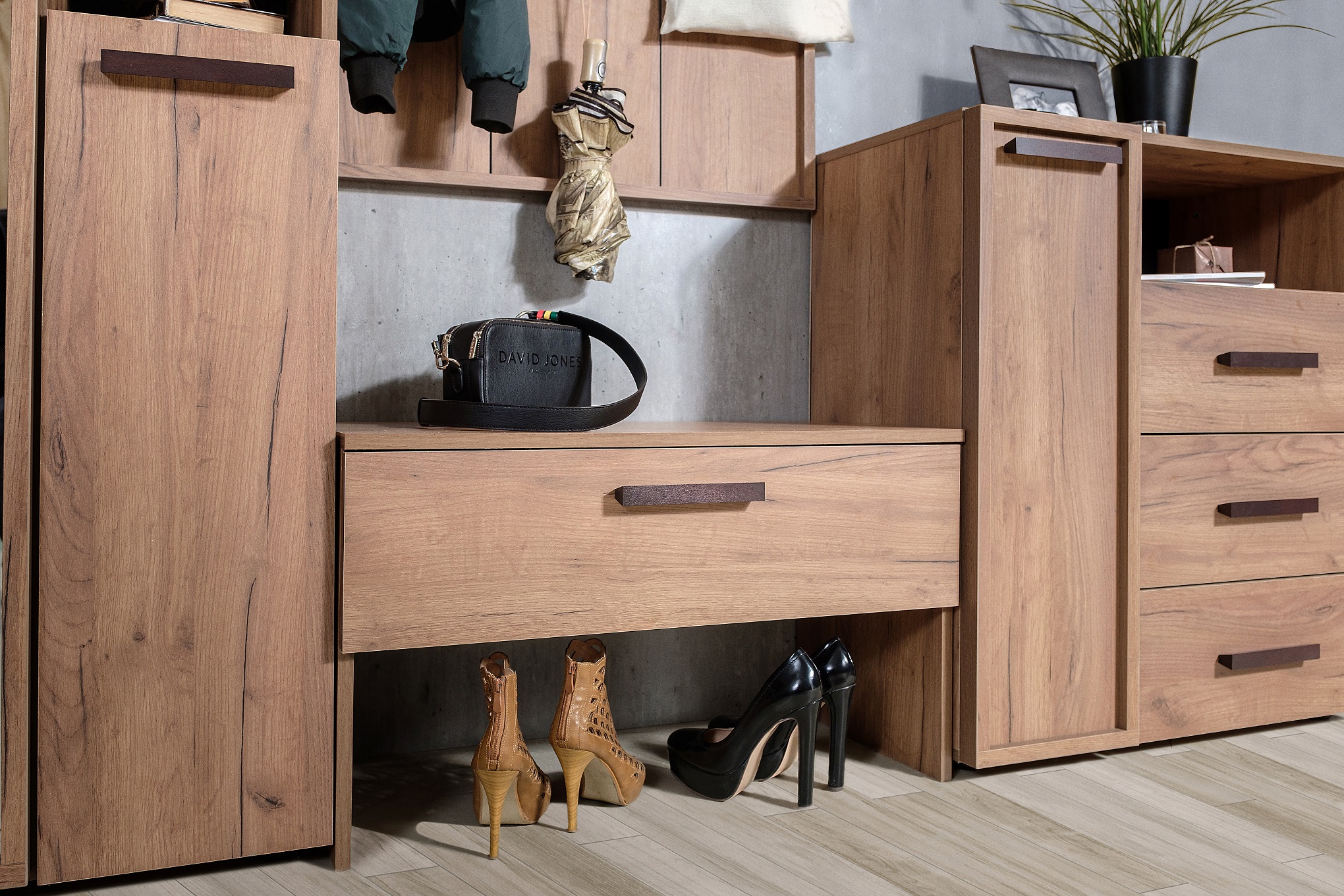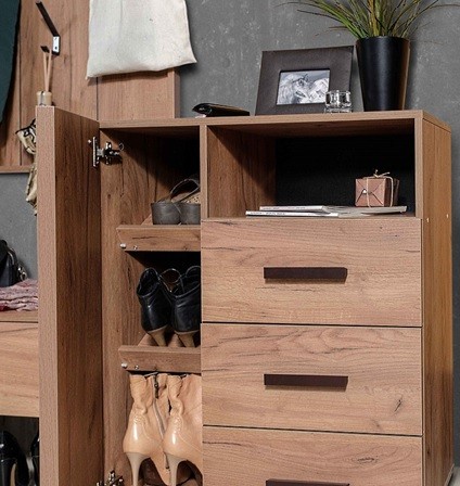 Функциональность: обладает вместительными системами хранения, зеркалом и удобным сиденьем для переобувания.
