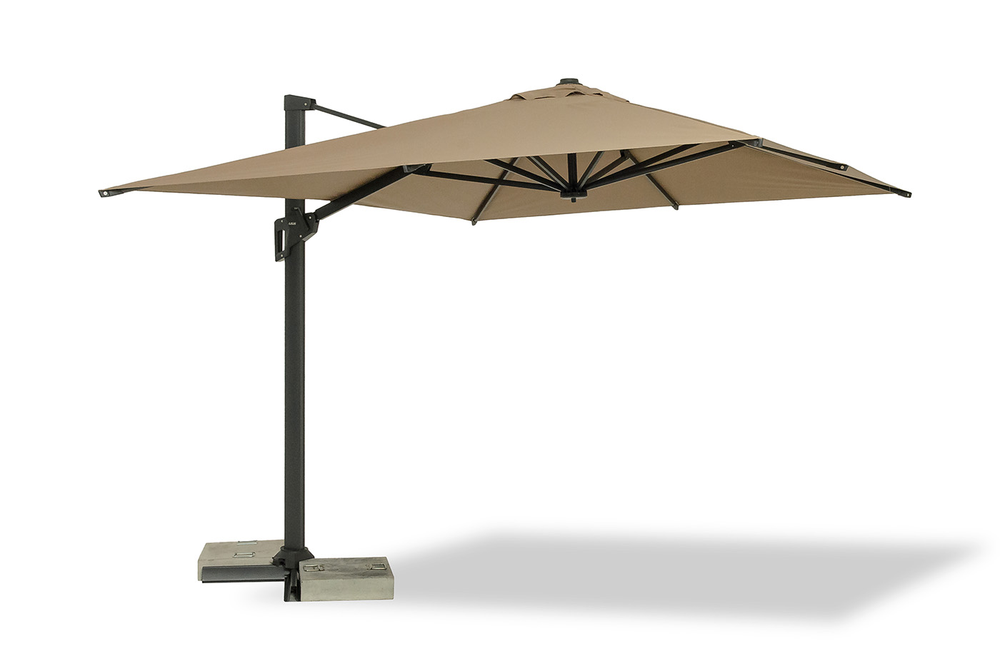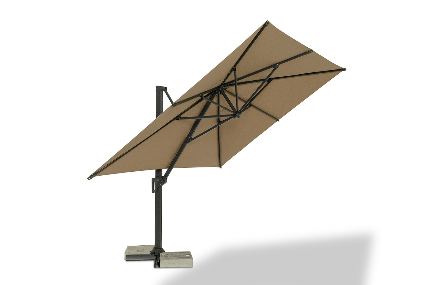 Уличный зонт «Римини» на боковой алюминиевой опоре с размером купола 3×4 м и общей высотой 272 см.