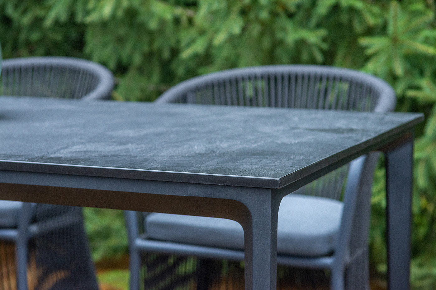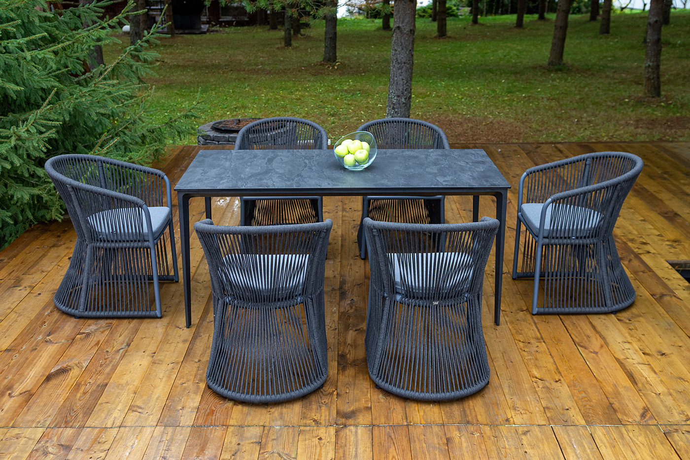 В состав входит стол «Малага» со столешницей из HPL‑пластика. Размеры столешницы — 1600×800 мм, высота стола — 750 мм. Цвет поверхности — «серый гранит»: сдержанный оттенок придает изделию солидный вид и легко вписывается в разные интерьерные решения. Прочный HPL‑пластик устойчи "Романо" стул плетеный из роупа, каркас алюминий темно-серый (RAL7024) муар, роуп темно-серый круглый, ткань темно-серая 027 6шт. 580Х590Х780, "Малага" обеденный стол из HPL 160х80см, цвет "серый гранит", каркас черный 1шт. 1 600Х800Х750,