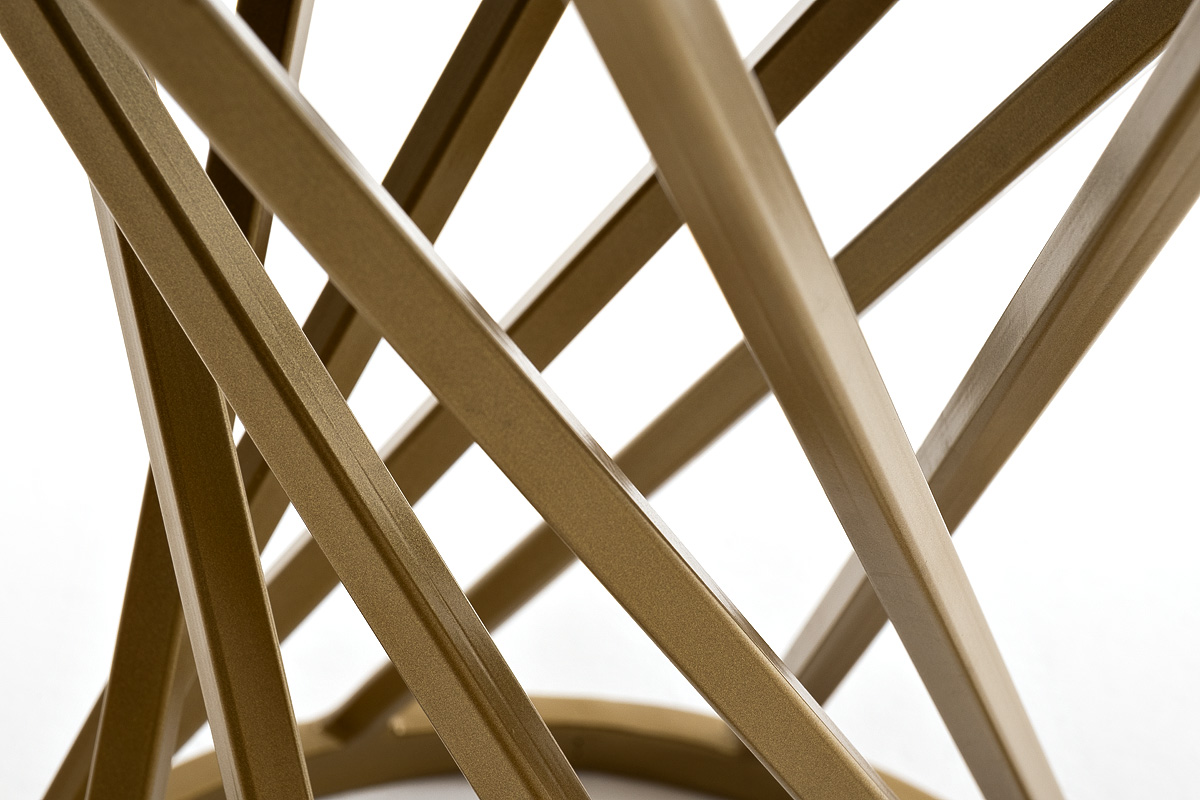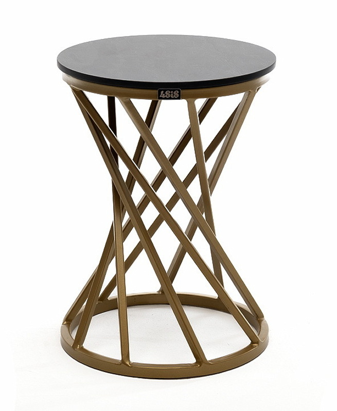 Круглый журнальный столик «Сантьяго» каркас изготовлен из стали, окрашенного в золотой цвет. Столешница выполнена из высококачественного монолитного компакт-пластика HPL, толщиной 12 мм. Цвет столешницы - "серый гранит".