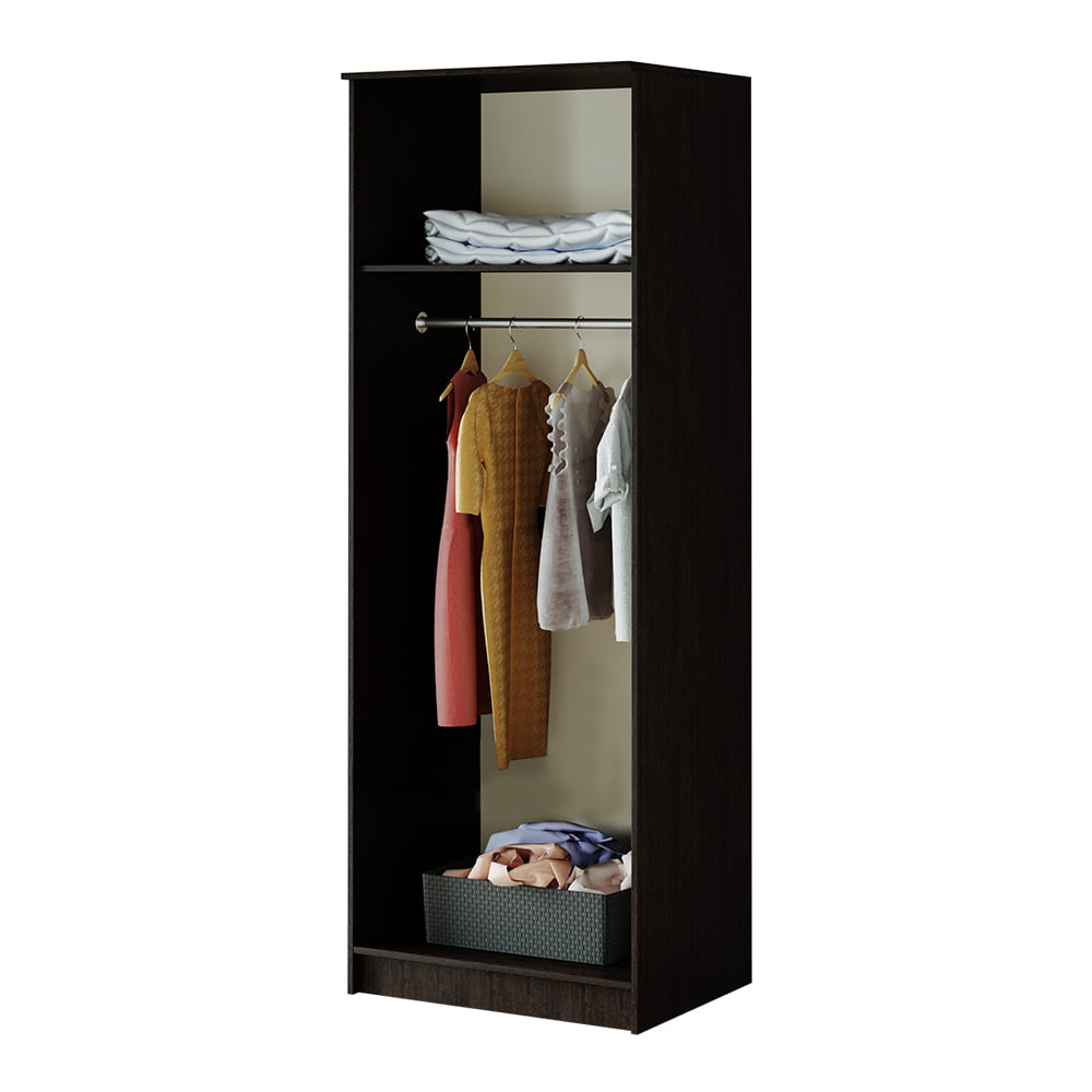 Шкаф 2-х створчатый оснащен полкой для вещей и хромированной штангой.