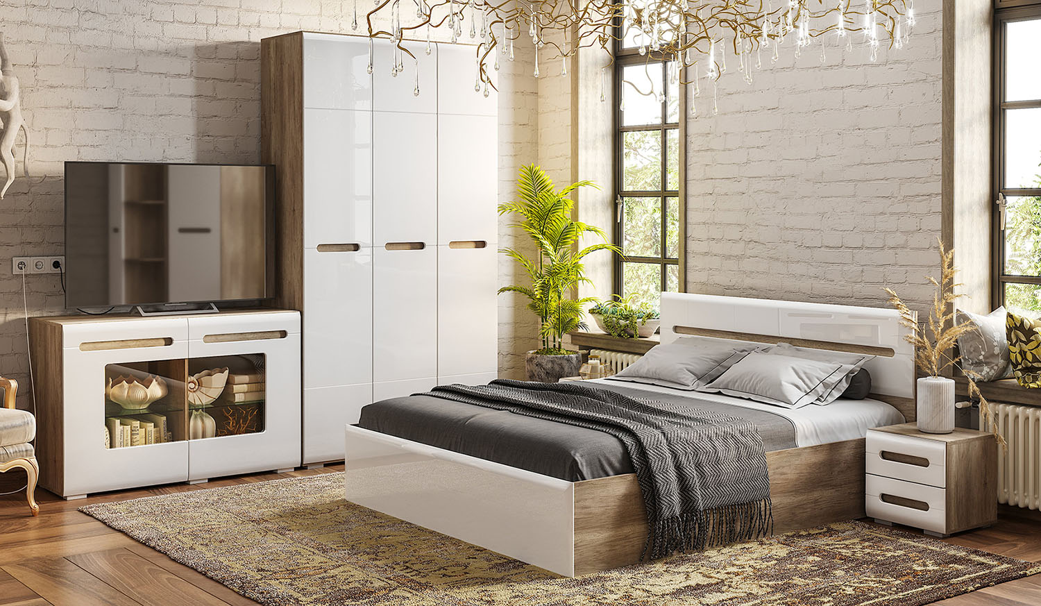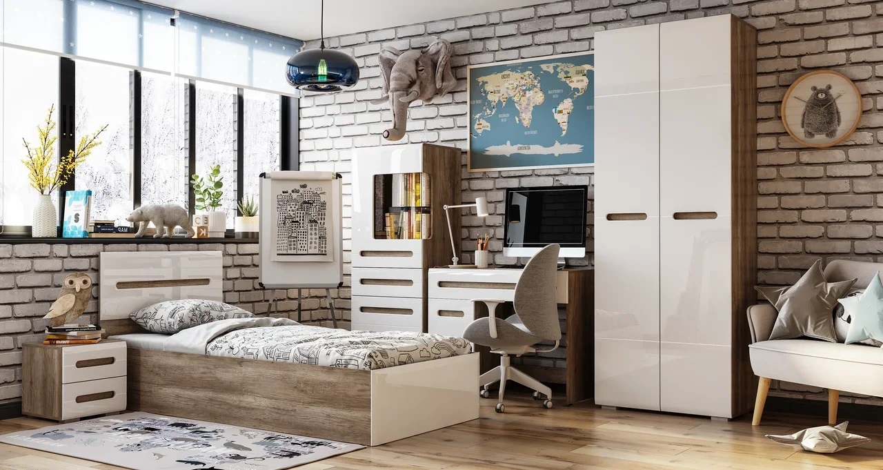 Модульная система НАОМИ - это свежий одухотворенный интерьер, наполненный светом, комфортом и функциональностью. Уникальная геометрия фрезерованных фасадов создает атмосферу ультра-современности и минимализма. Контрастность сочетания матового декора корпуса элитного дерева «Дуб Каньон» с безмятежно-белыми глянцевыми створками относит нас к спокойствию, экологичности и безмятежности. Оригинальное конструктивное решение коллекции – ручки фасадов, выполненные путем сложной фрезеровки и подчеркнутые углубленным декором дубового спила.