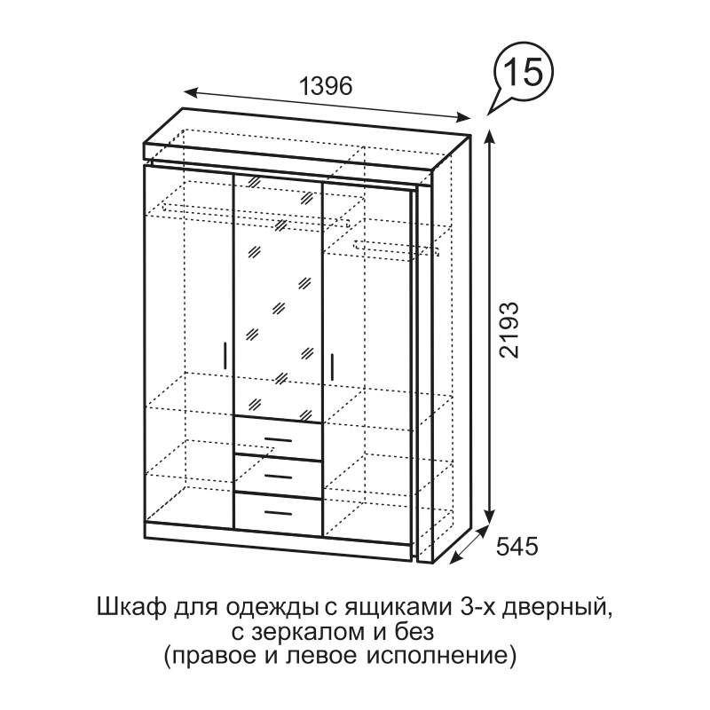Шкаф прямой 3 дверный