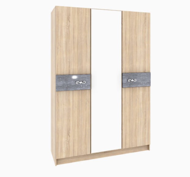 В поисках вместительного шкафа для спальни обратите внимание на трехстворчатый шкаф Мадлен. Наполнение шкафа - длинная продольная штанга и комплект полок. Всего одного такого шкафа будет достаточно, чтобы с комфортом разместить одежду на плечиках и вещи в сложенном виде. Изюминкой шкафа выступает комбинированный фасад с зеркалом, который визуально расширит Вашу комнату и позволит держать внешний вид под контролем.